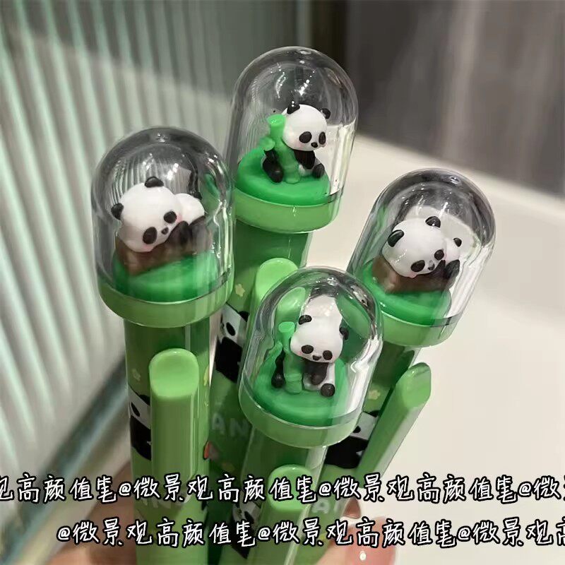 ins微景观熊猫中性笔高颜值可爱文创周边学生卡通按动签字笔水性国宝黑色0.5新款学生高颜值女生初中生