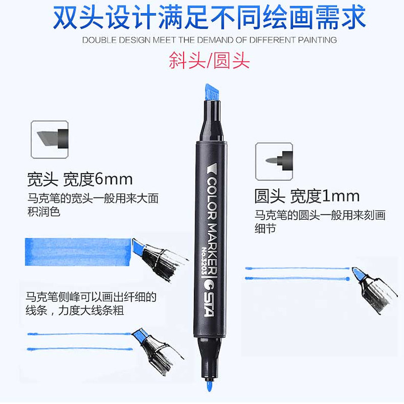 STA斯塔马克笔3203双头酒精油性考研景观室内手绘画设计自选单支