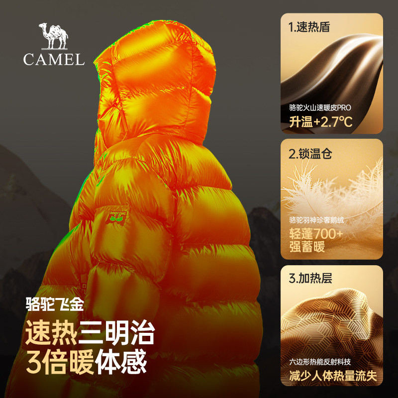 骆驼飞金鹅绒服男冬季2025新款情侣保暖连帽羽绒服防风极寒羽绒衣