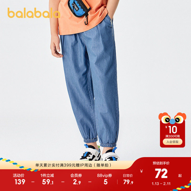 巴拉巴拉童装男童裤子儿童牛仔裤夏装防蚊薄款大童天丝牛仔束脚裤