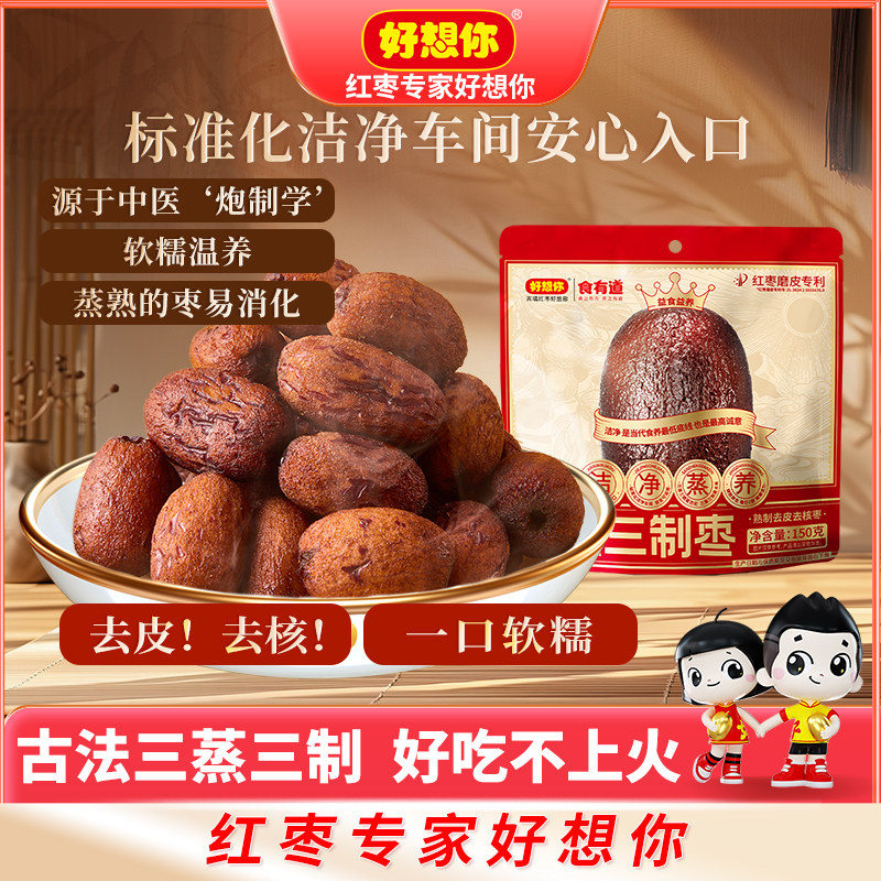 好想你三蒸三制枣黑金枣新疆红枣三蒸三晒枣去皮去核0添加食有道