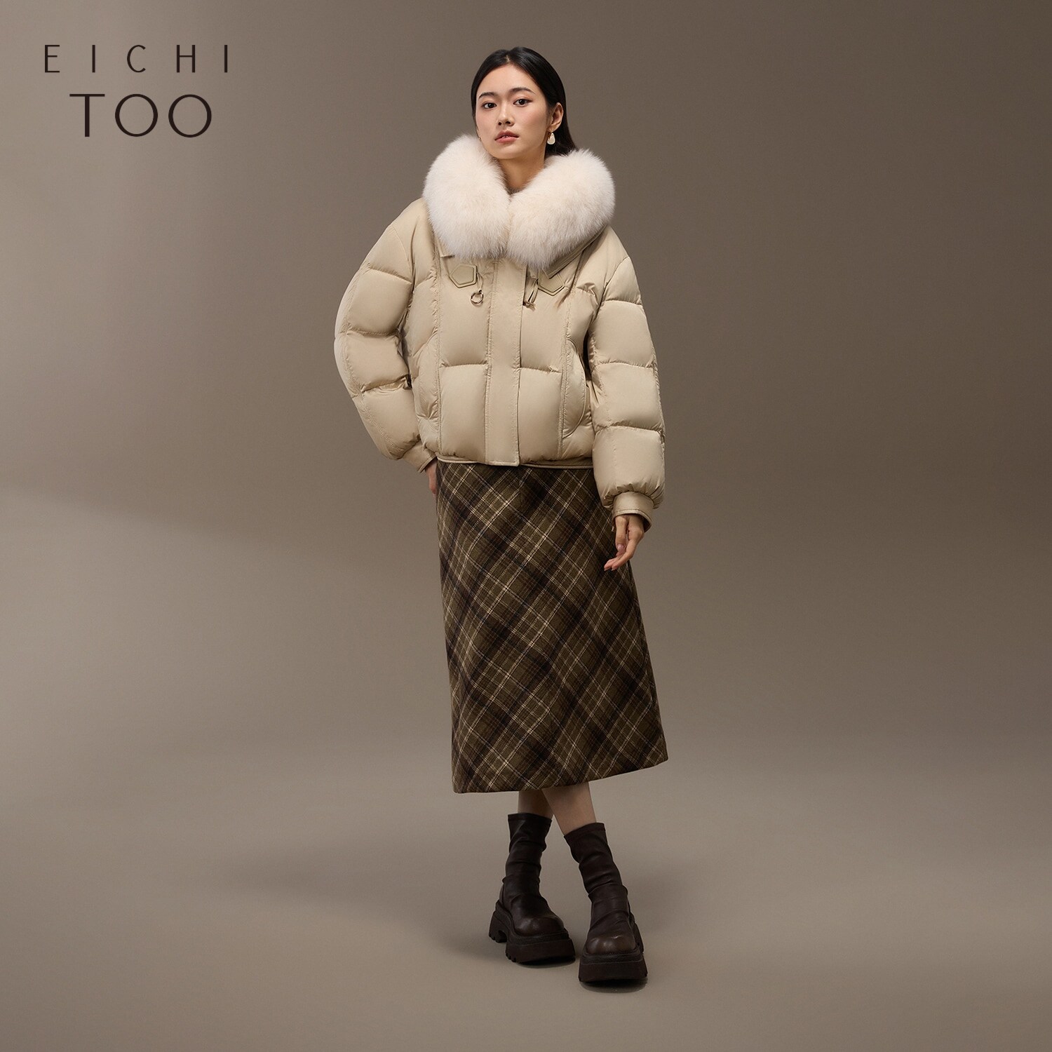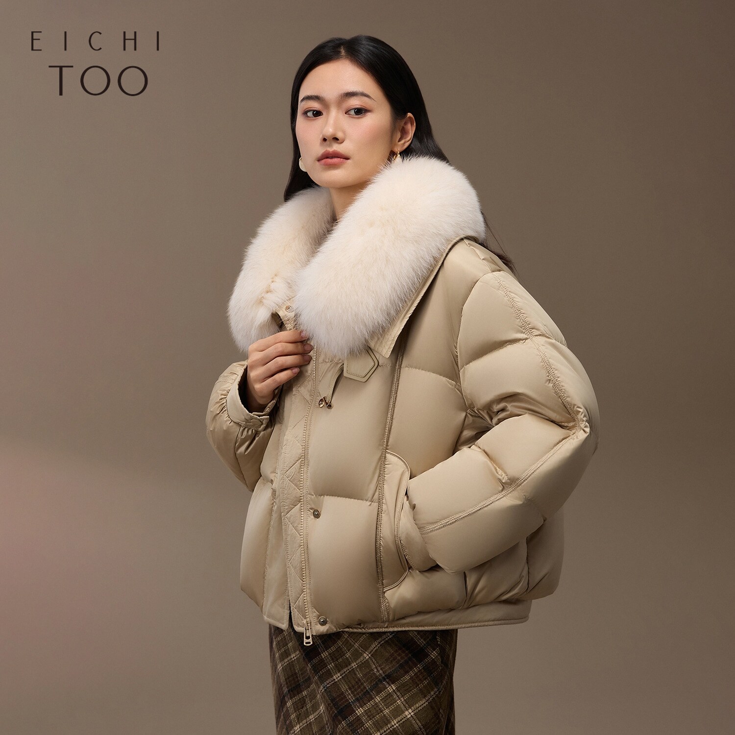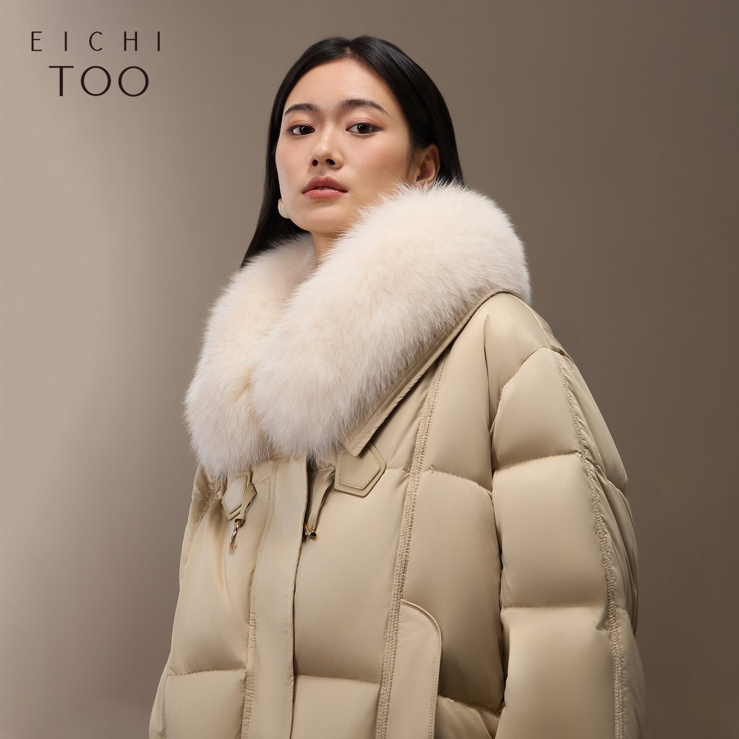 爱居兔国风羽绒服女冬季新款大毛领时尚羽绒服外套