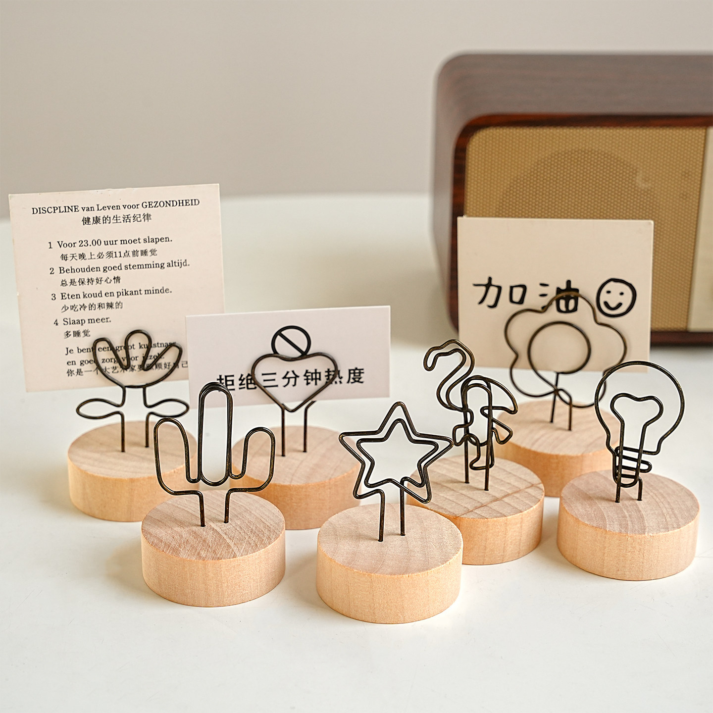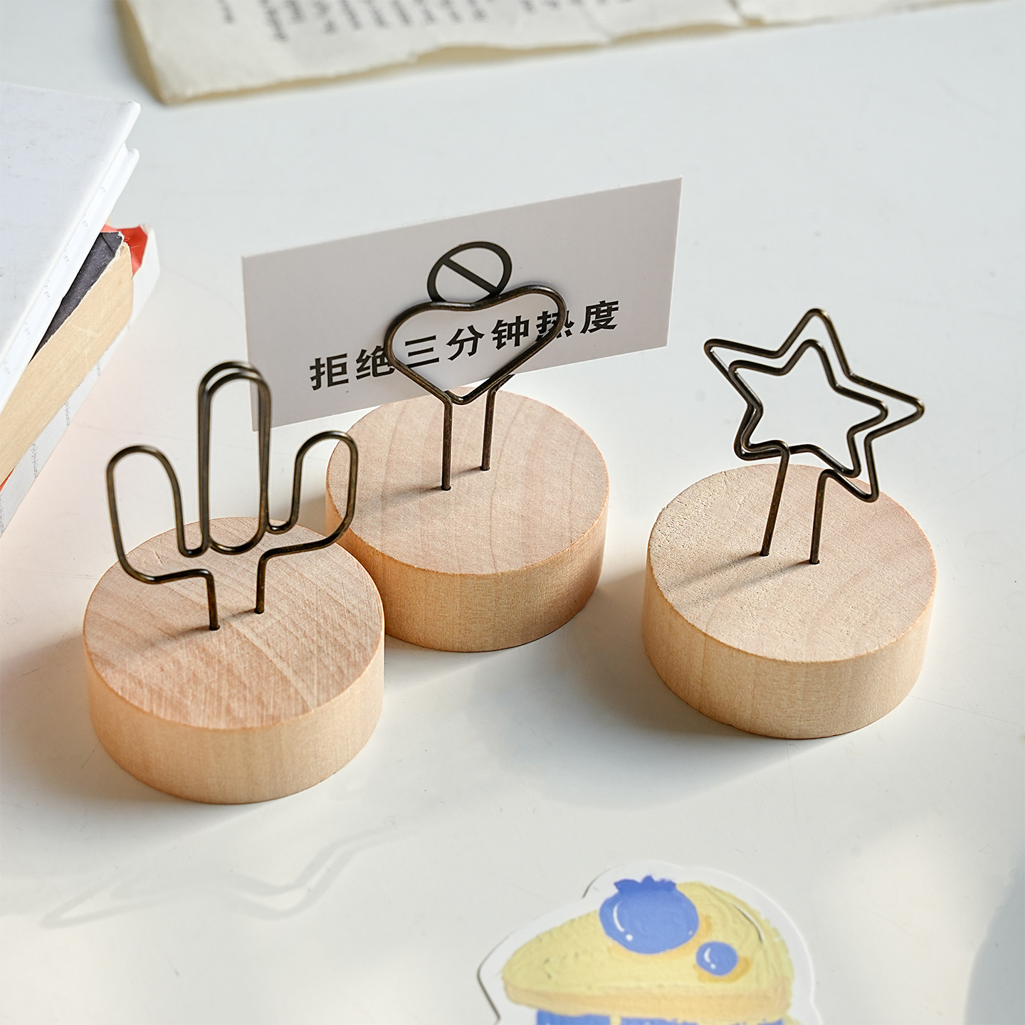 创意木质立体照片夹子办公室桌面装饰摆件可爱留言夹相片夹便签夹