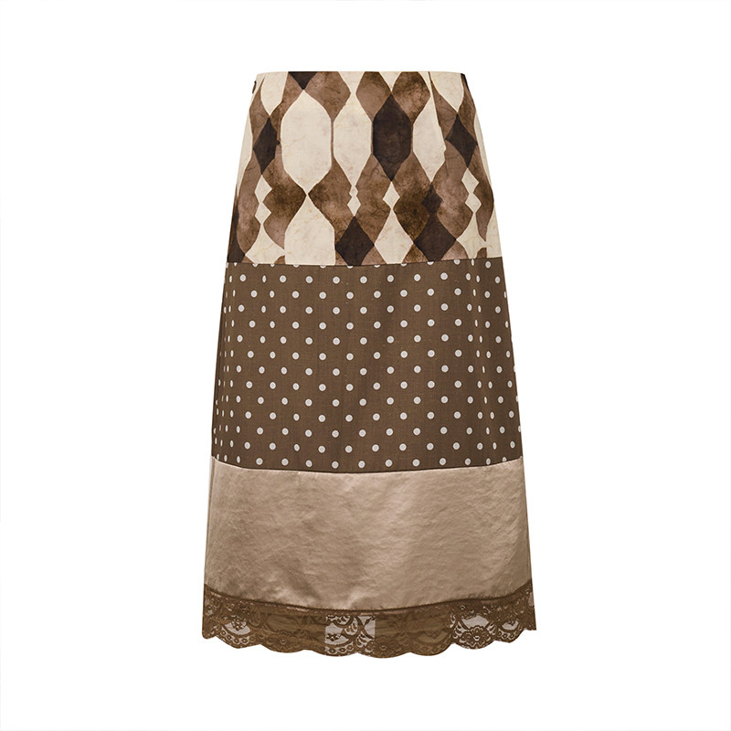 Petit Bari天丝亚麻复古印花拼接蕾丝直筒半裙女 春夏 复古民族风