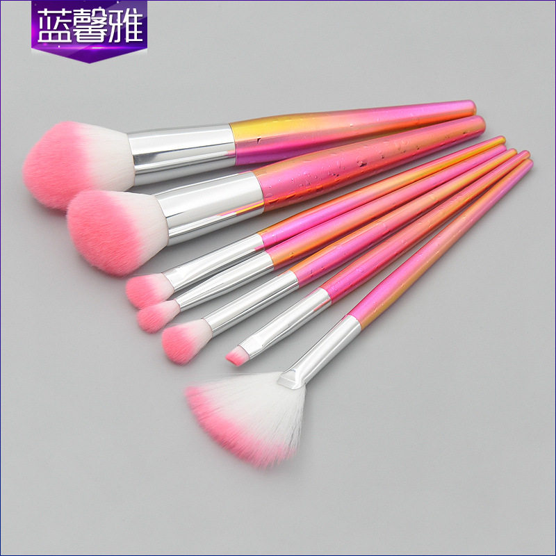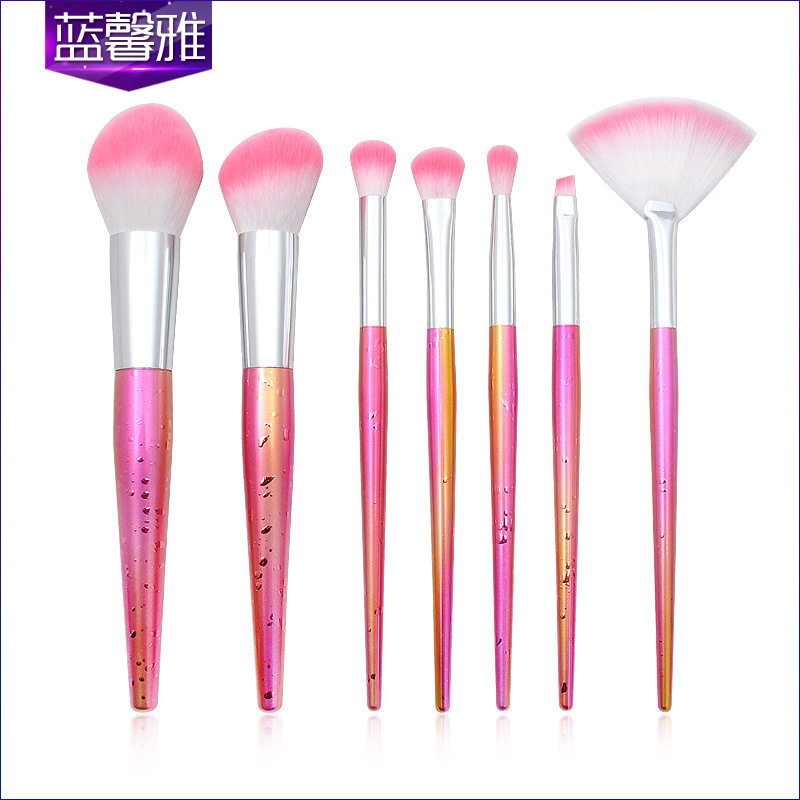 新款7支水滴纹锥形塑胶柄化妆刷套装 散粉底眼部彩妆美妆工具工厂