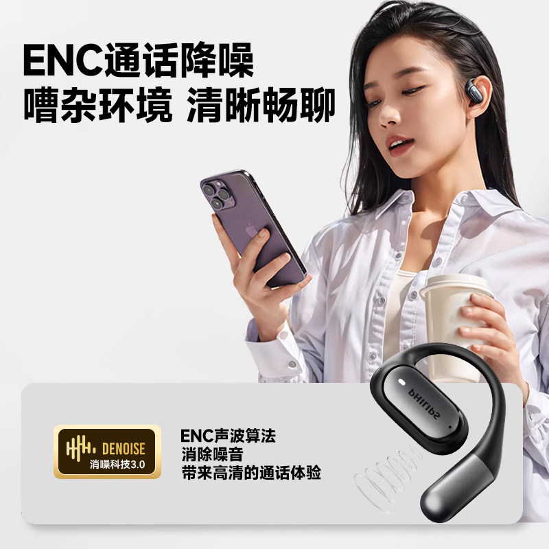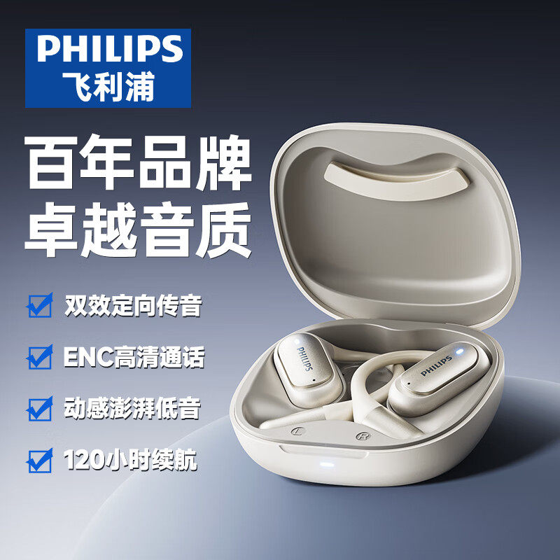飞利浦TAA3719蓝牙耳机正品无线挂耳式2026新款运动降噪耳机