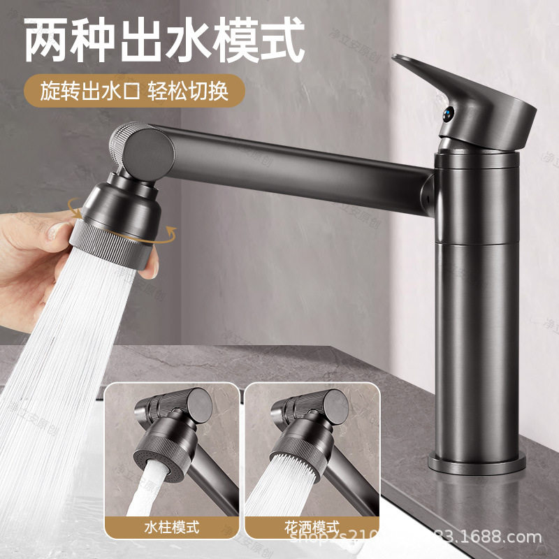 全铜机械臂万向水龙头洗脸盆冷热洗手池卫生间面盆旋转招财猫龙头