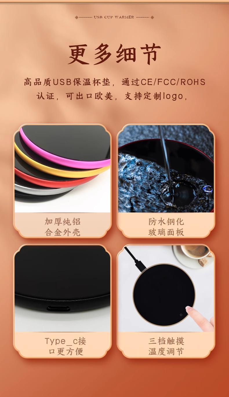 TypeC接口加热杯垫保温杯垫咖啡杯垫茶杯垫USB恒温宝暖杯垫礼品