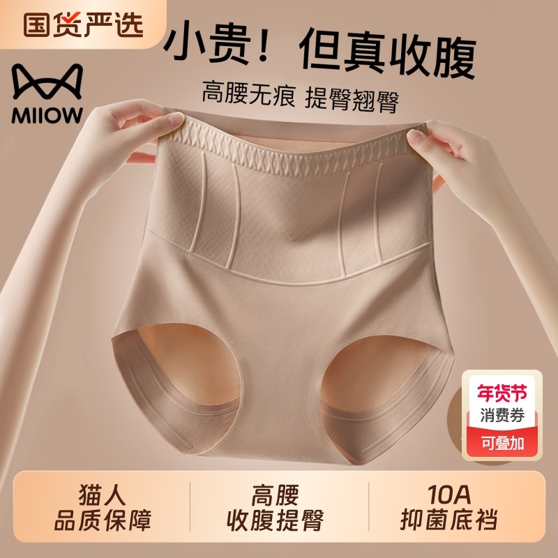 猫人无痕高腰收腹裤强力收腹收小肚子塑身美体提臀内裤女翘臀神器