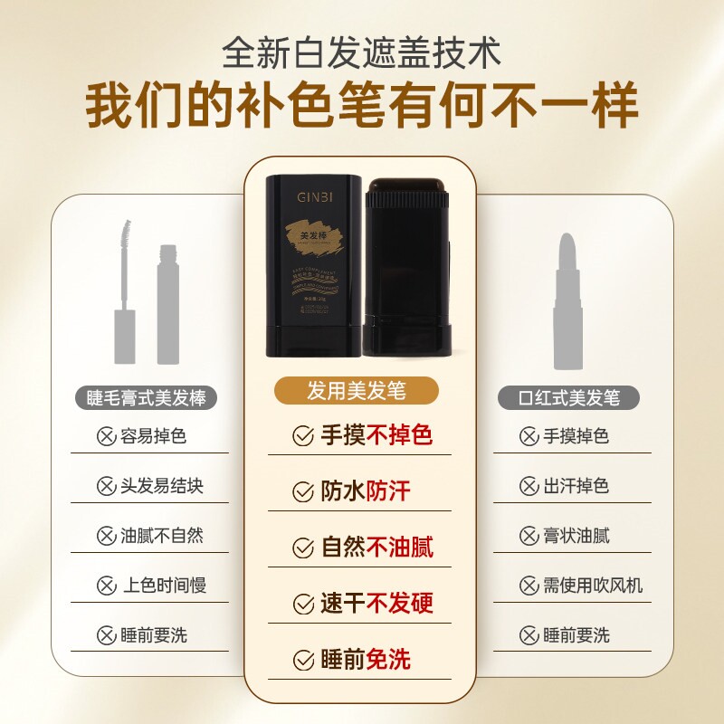 美发棒遮盖白发防水防汗不伤发不掉色一次性染发自然带齿梳补色笔