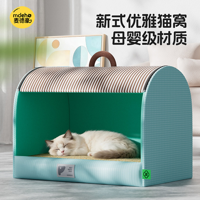 猫窝2026热卖四季通用凉席半封闭安全感夏天可拆洗猫产房夏季狗窝