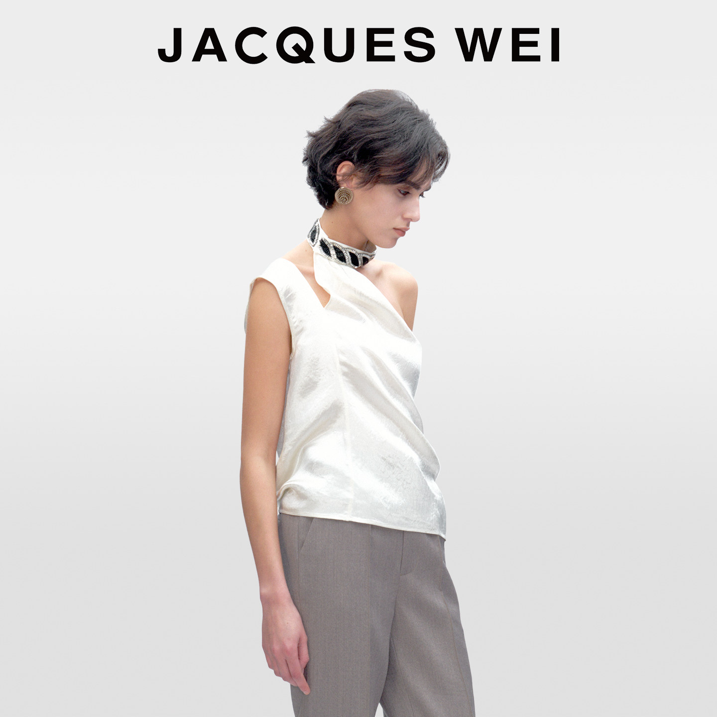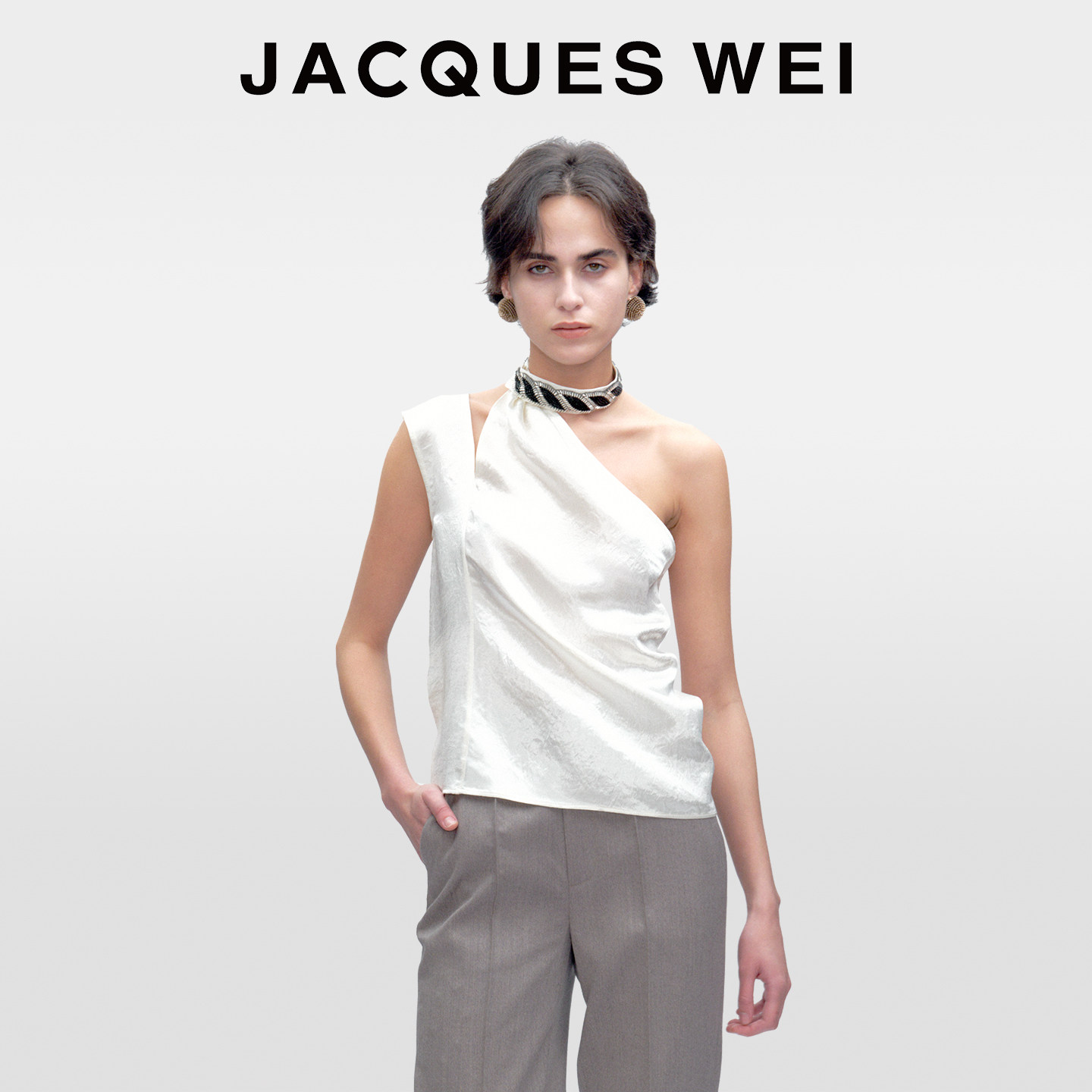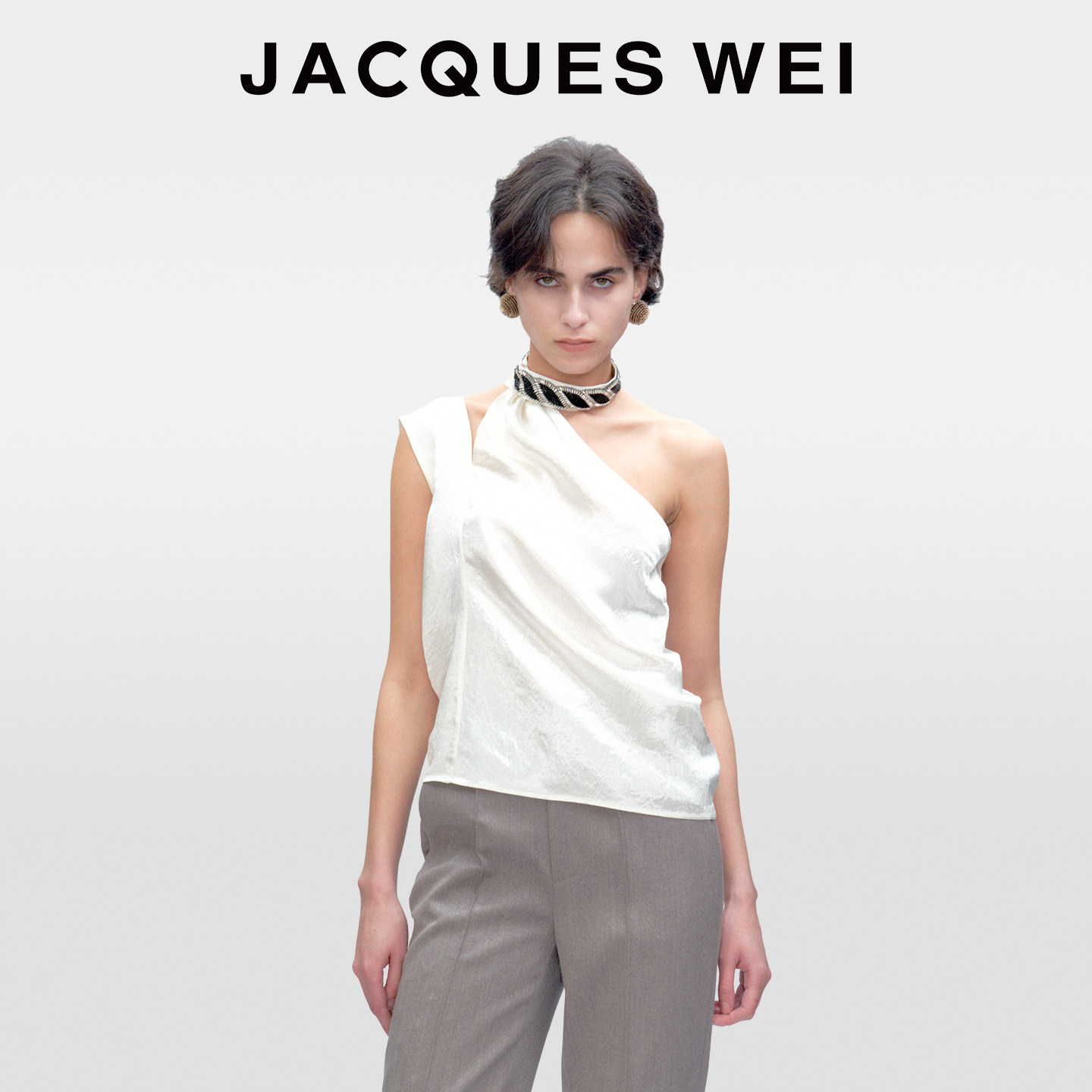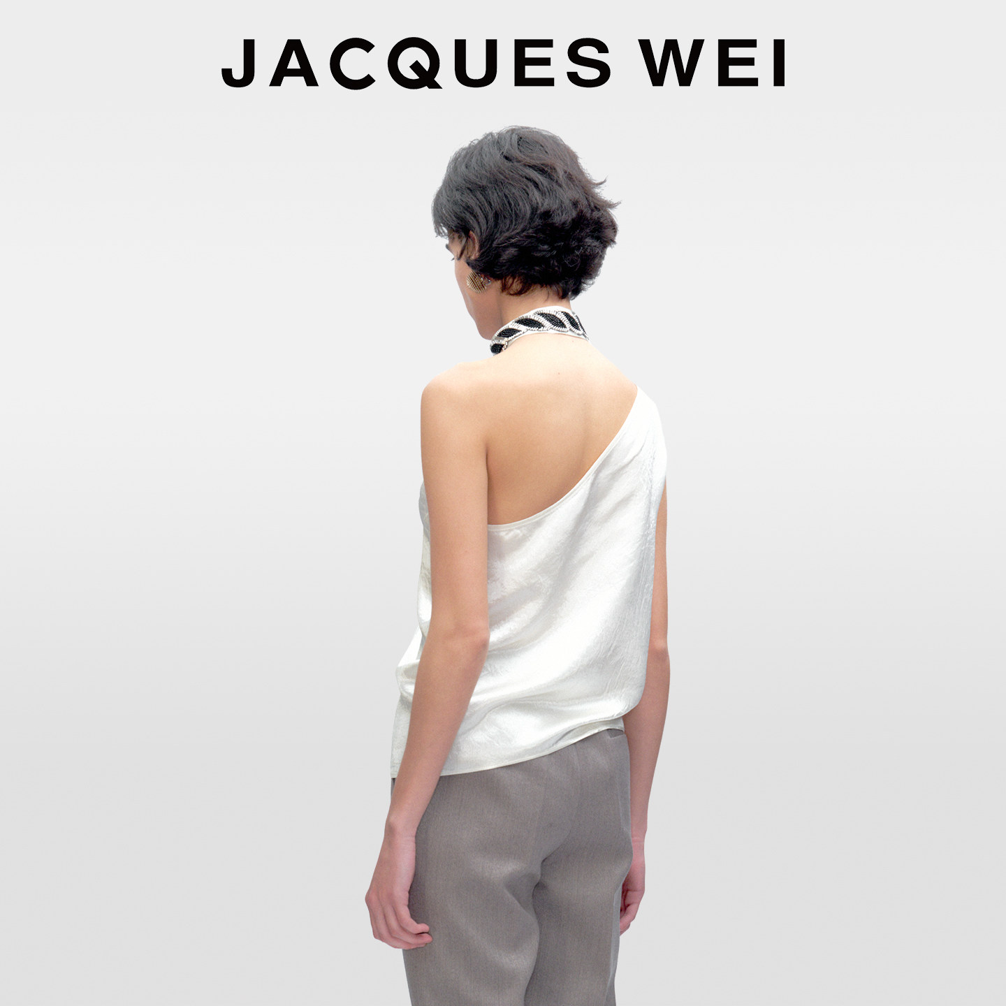 JACQUES WEI2025设计师款女装小众原创白色缎面单肩挂脖背心吊带