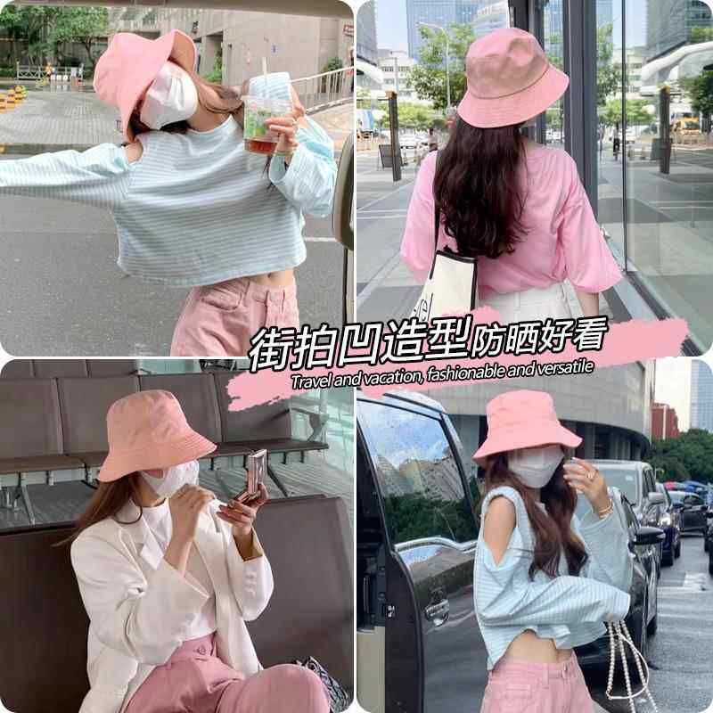 日系可折叠夏季条纹渔夫帽女新款长防晒帽子时尚盆帽大头围太阳帽