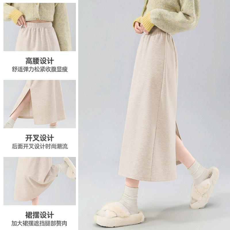 SIINSIIN直筒裙加绒2025年新款高腰收腹半身裙女黑色显瘦A字裙tk