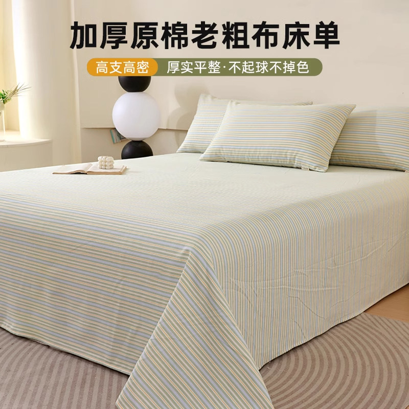 纯棉老粗布床单单件双人100全棉单人宿舍加厚被单枕套三件套秋冬