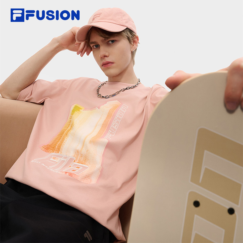 FILA FUSION斐乐潮牌男子针织短袖衫2025秋季新款休闲纯棉凉感T恤