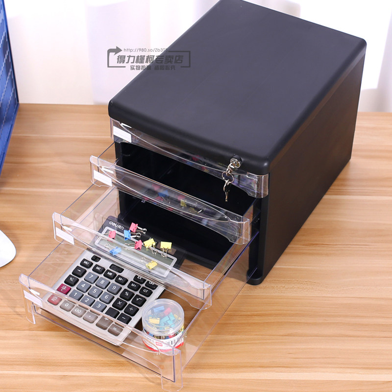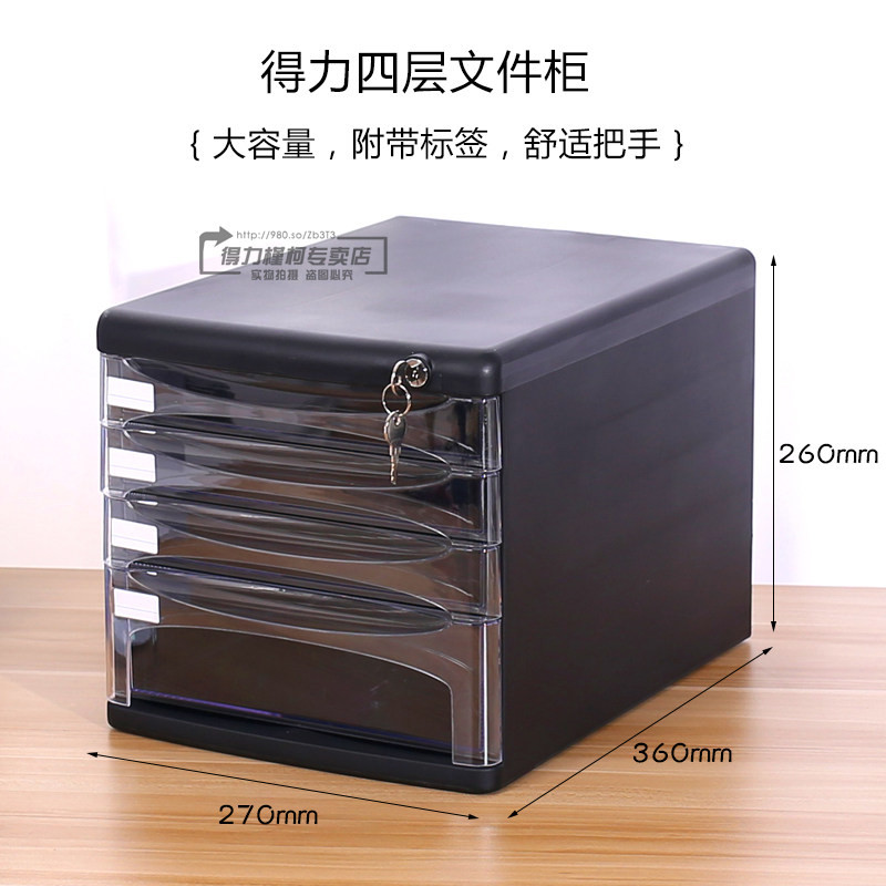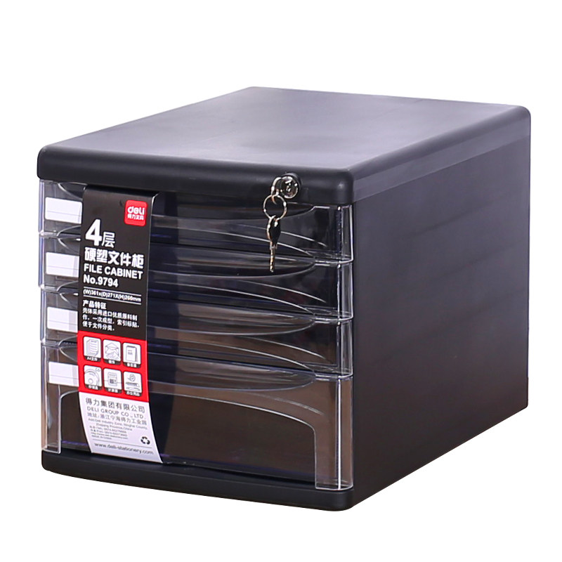 得力四层带锁透明抽屉文件柜黑色灰色桌面文件盒A4塑料资料文件分类收纳柜整理办公档案收集整理柜大容量柜子