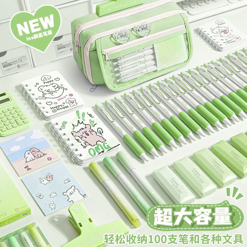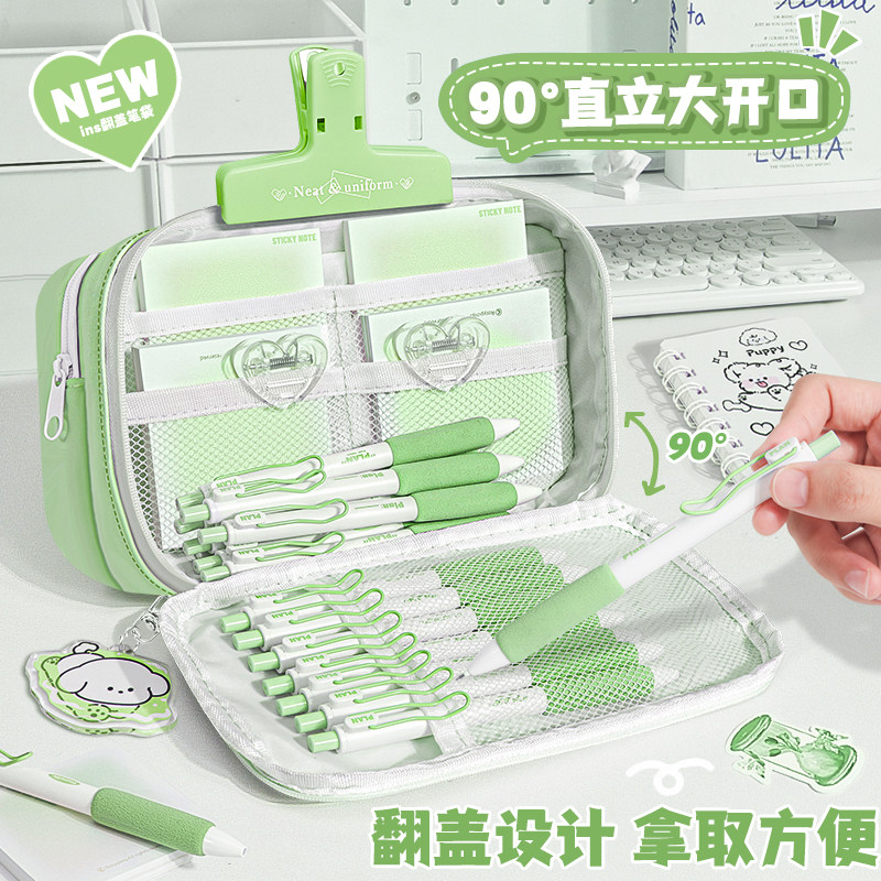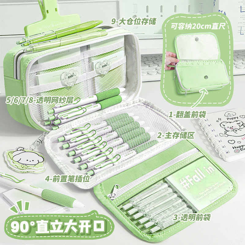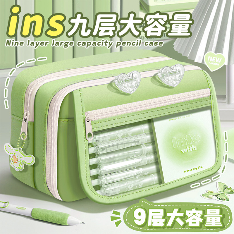 ins象牙白!2026新款9层简约笔袋翻盖款女生高颜值透明文具铅笔盒