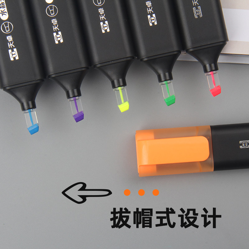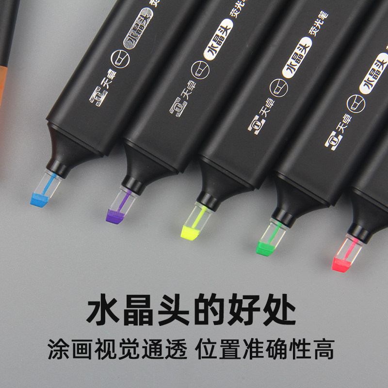 天卓水晶头荧光笔粉红橙色蓝色黄色绿色紫色12支盒装彩色笔学生笔记标重点不遮字涂画视野好大支好握复习分类