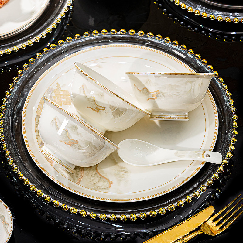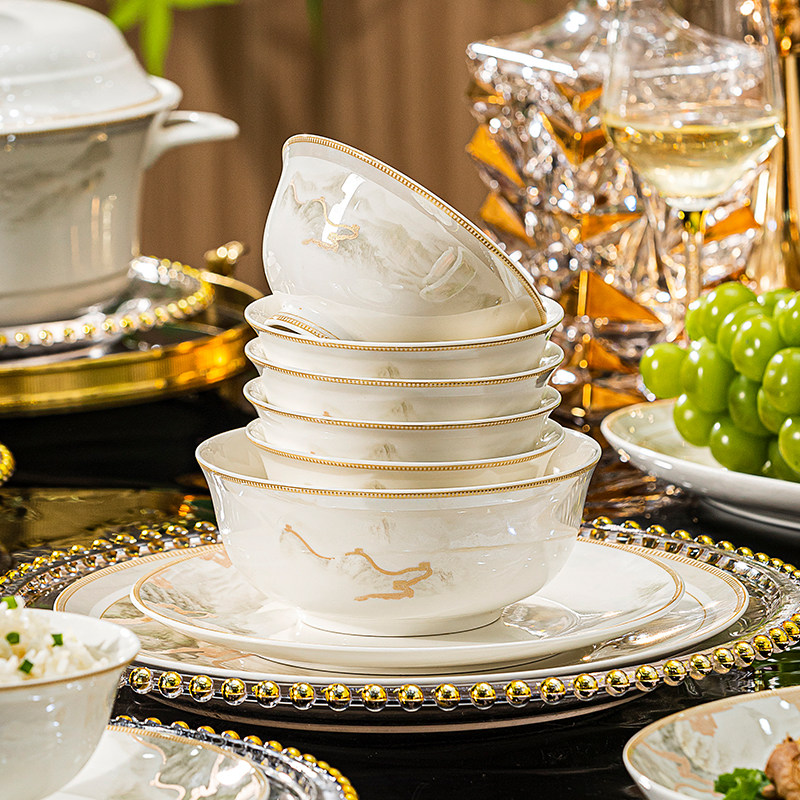 餐具套装2025新款轻奢高级感陶瓷碗碟套装家用乔迁碗盘饭碗组合筷