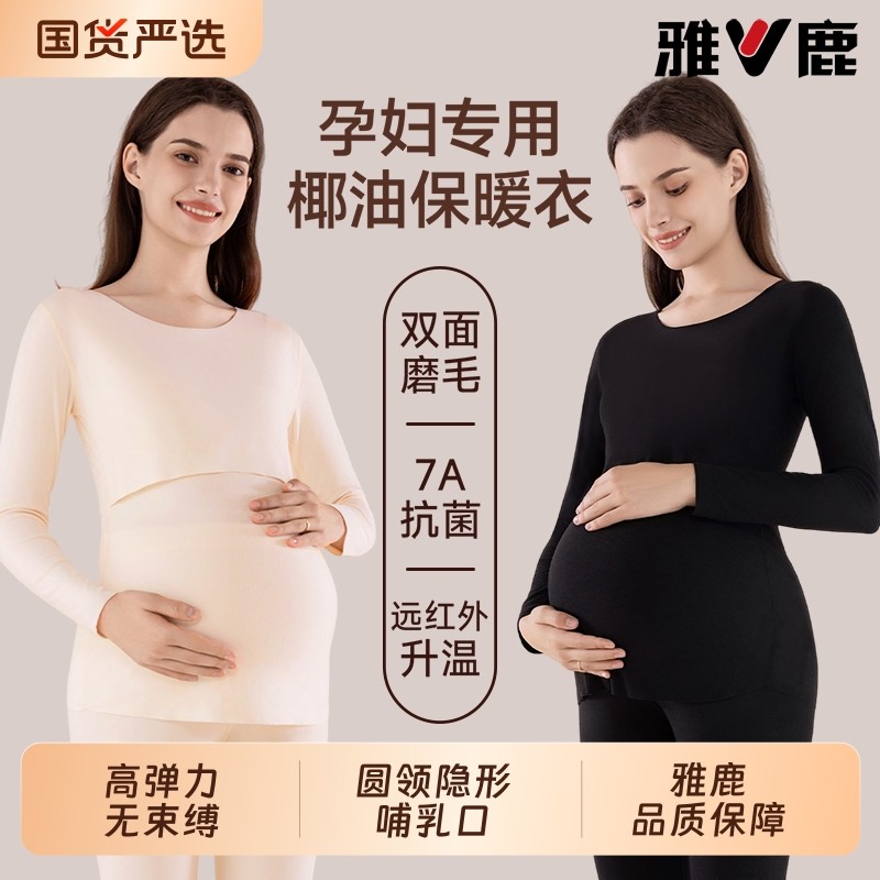 雅鹿孕妇秋衣秋裤套装女士哺乳保暖内衣秋冬季月子服薄款氨纶紫色