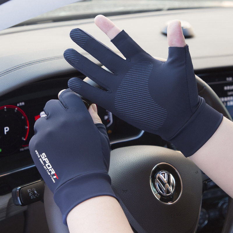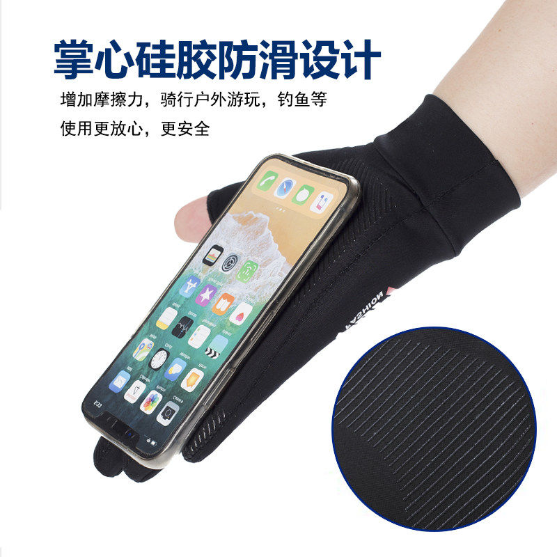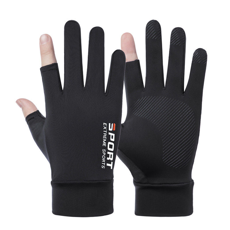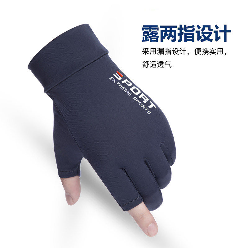 防晒手套男露指薄款冰丝开车漏二指路亚钓鱼半指夏季骑行登山防滑