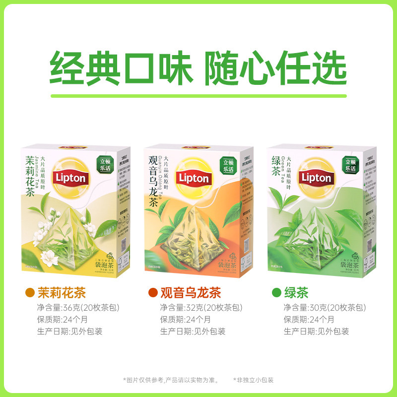 立顿茉莉花茶袋泡茶乐活S20绿茶观音乌龙茶大片品质原叶立顿茶包