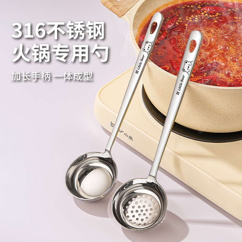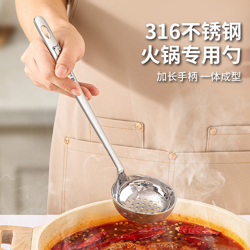 火锅专用漏勺316不锈钢大号盛汤勺食品级长柄汤勺子家用高档精致