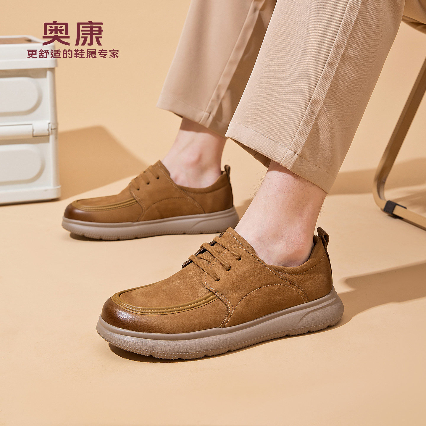 奥康 男鞋2026春季新款休闲皮鞋舒适休闲勃肯鞋工装鞋真皮袋鼠鞋N