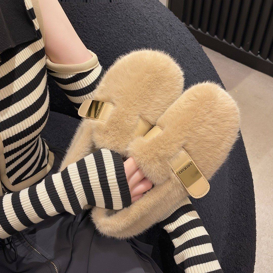 【水貂绒】毛毛鞋女冬季外穿一脚蹬豆豆鞋加绒保暖孕妇鞋软底棉鞋