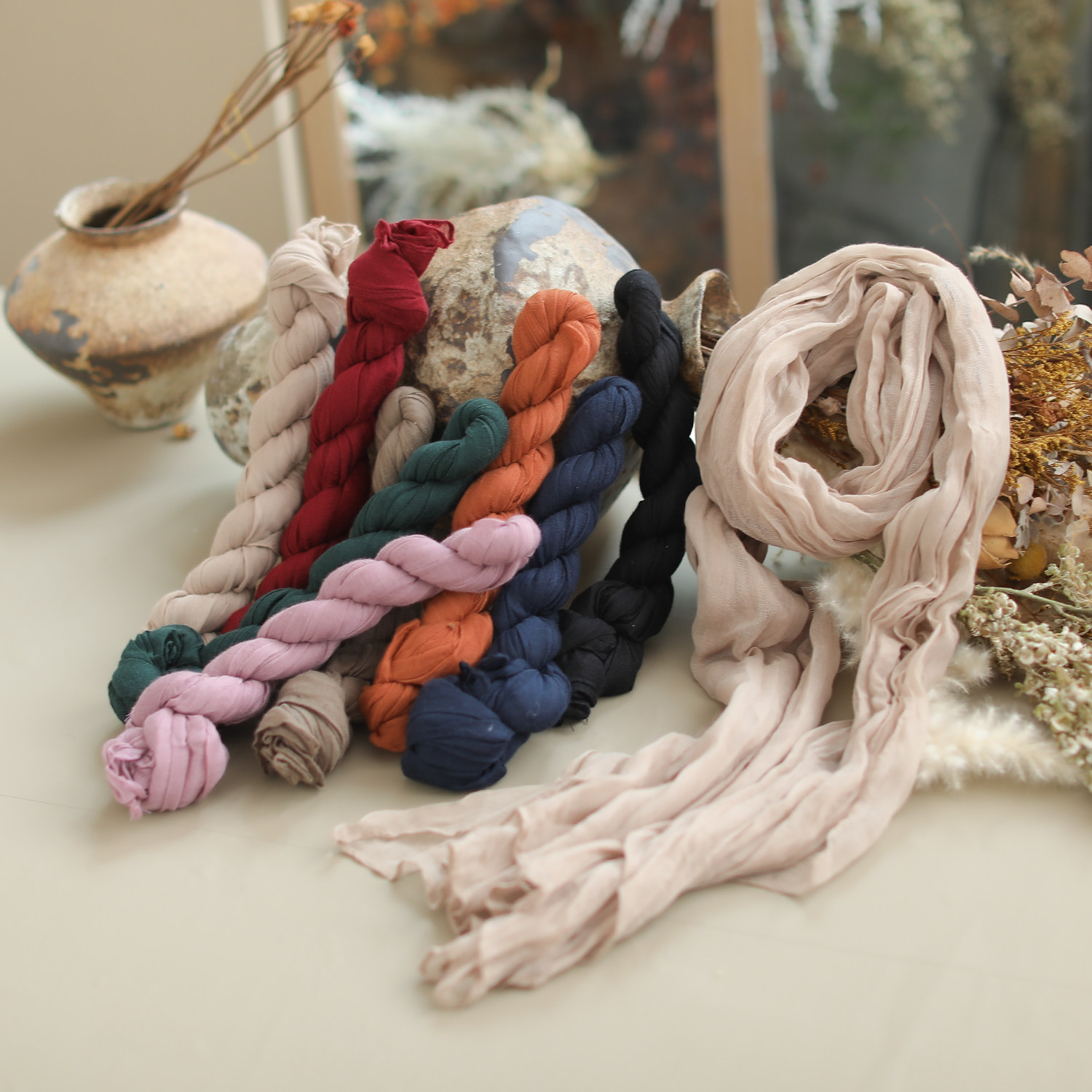 咖咪羽自然压褶日系文艺复古纯色文艺围巾百搭加长柔软女款围脖