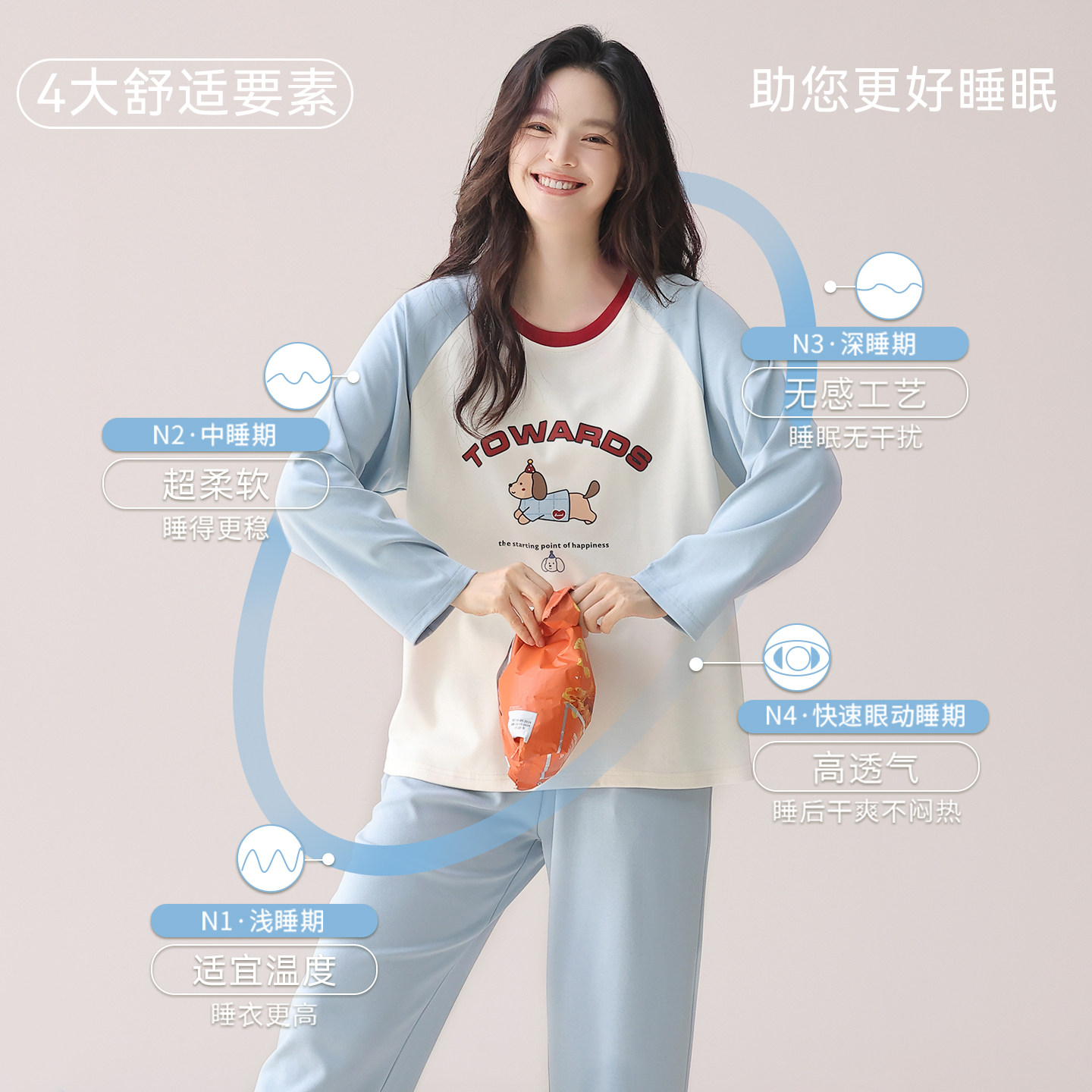 亚朵星球深睡睡衣睡裤家居服套装女款长袖带胸垫2025新款秋冬衣裤