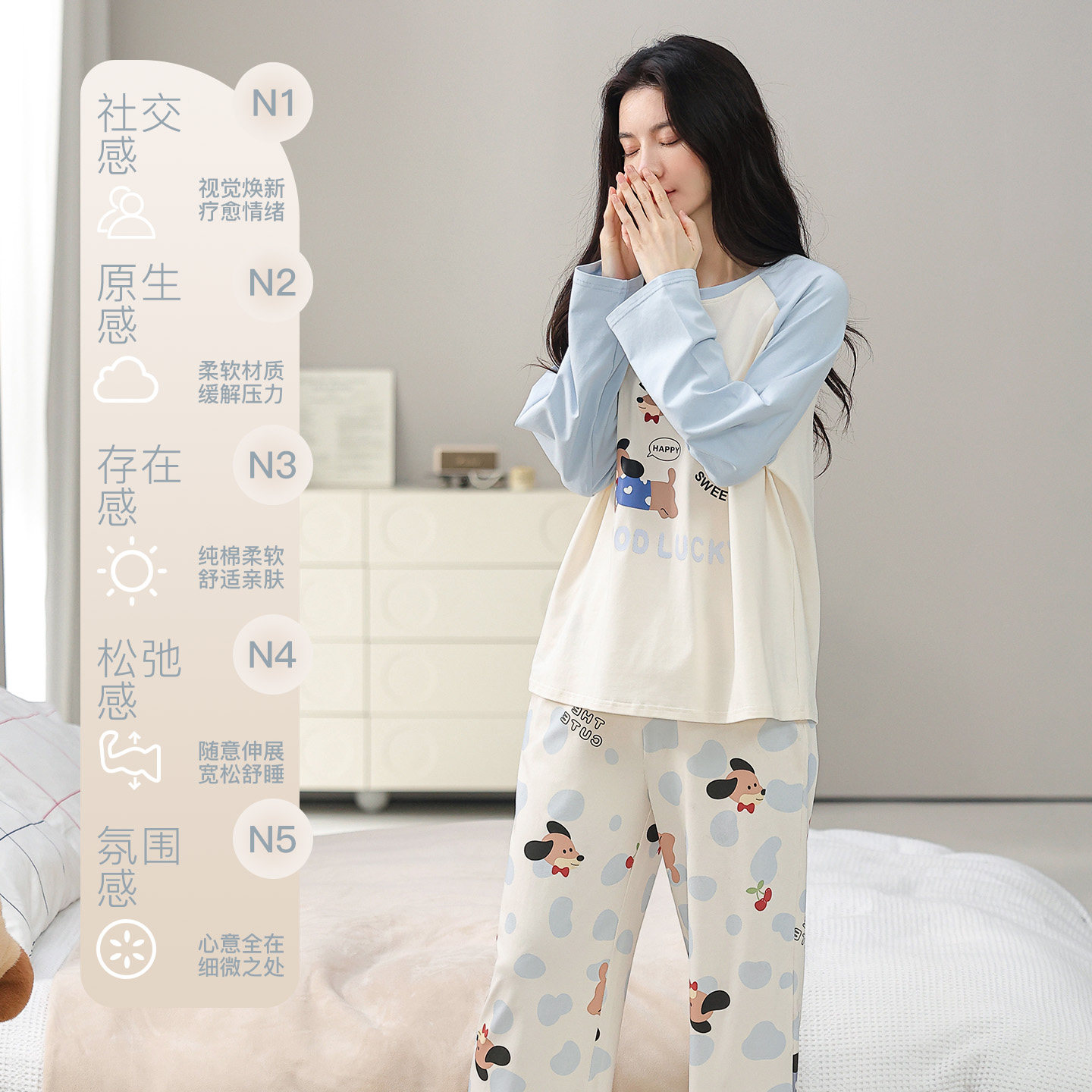 浪莎2025年新款睡衣女款春秋季纯棉长袖家居服秋冬薄款高级感套装