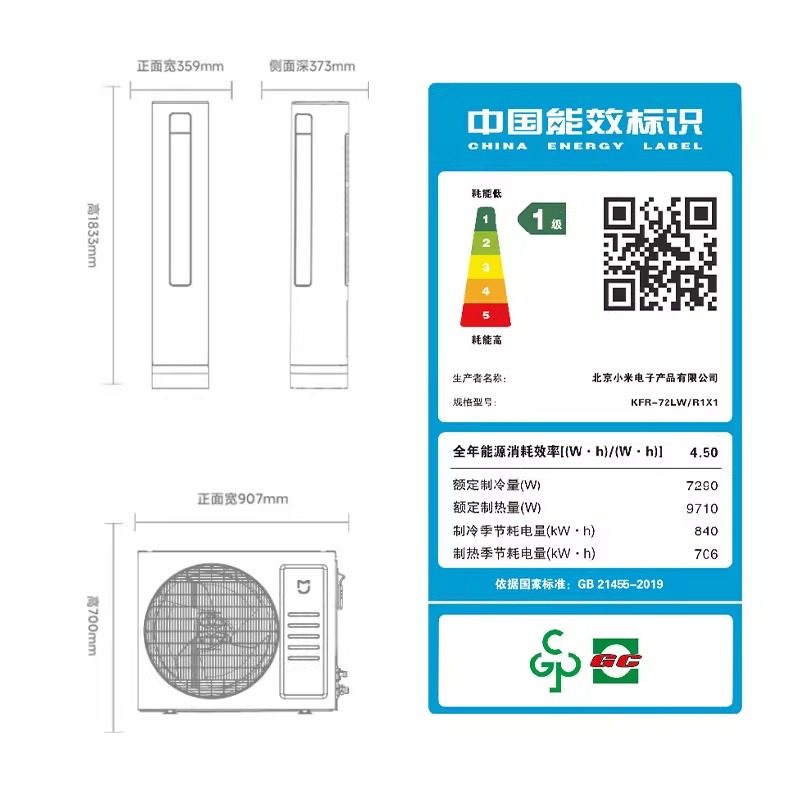 小米米家巨省电空调3匹2匹一级能效大风口柜机变频家用客厅冷暖