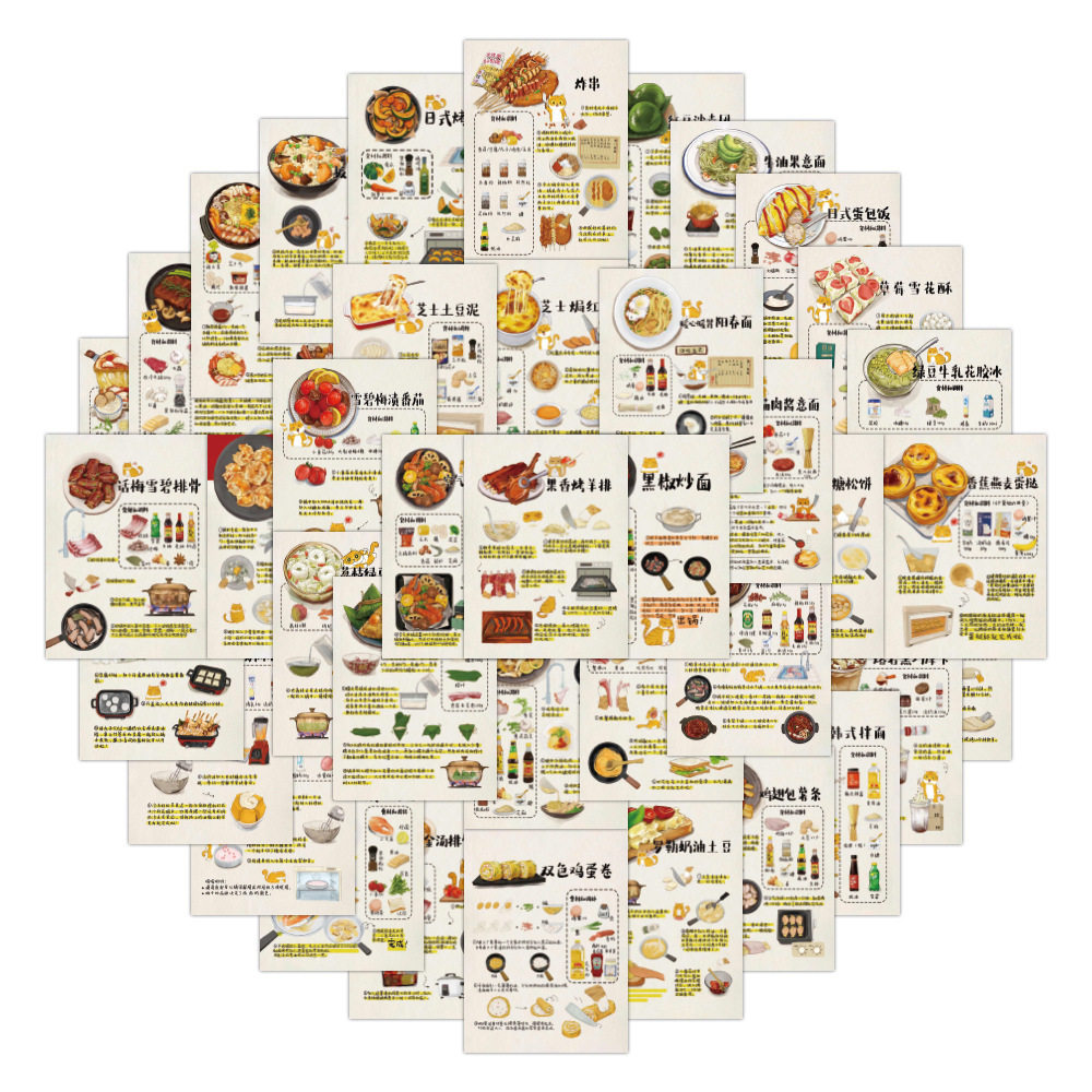 63张手绘菜谱小贴纸 家常菜周黑鸭甜品部队火锅烘焙美食制作贴画