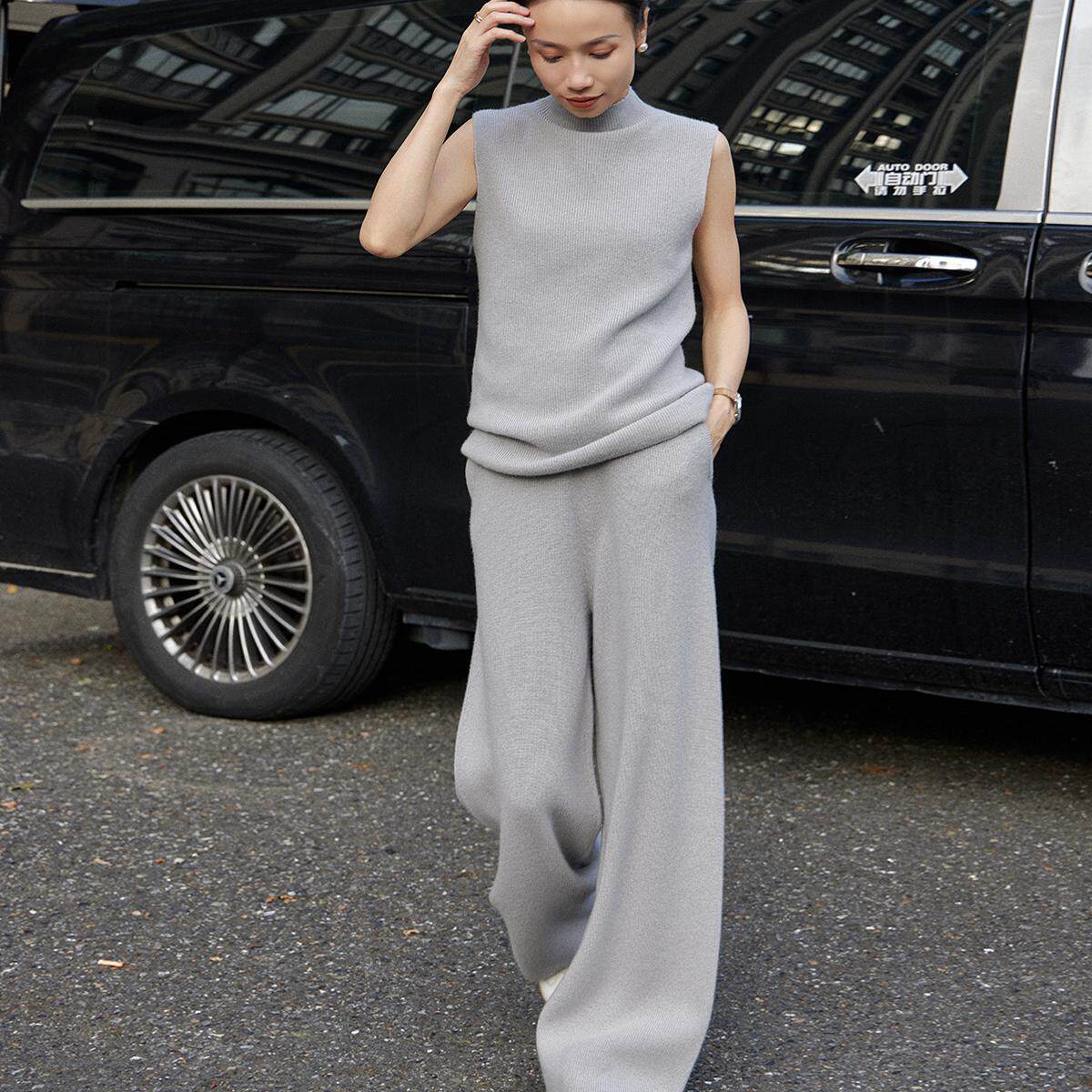 思诺芙德100%山羊绒无袖马甲女25秋冬新款圆领纯色针织叠穿内搭