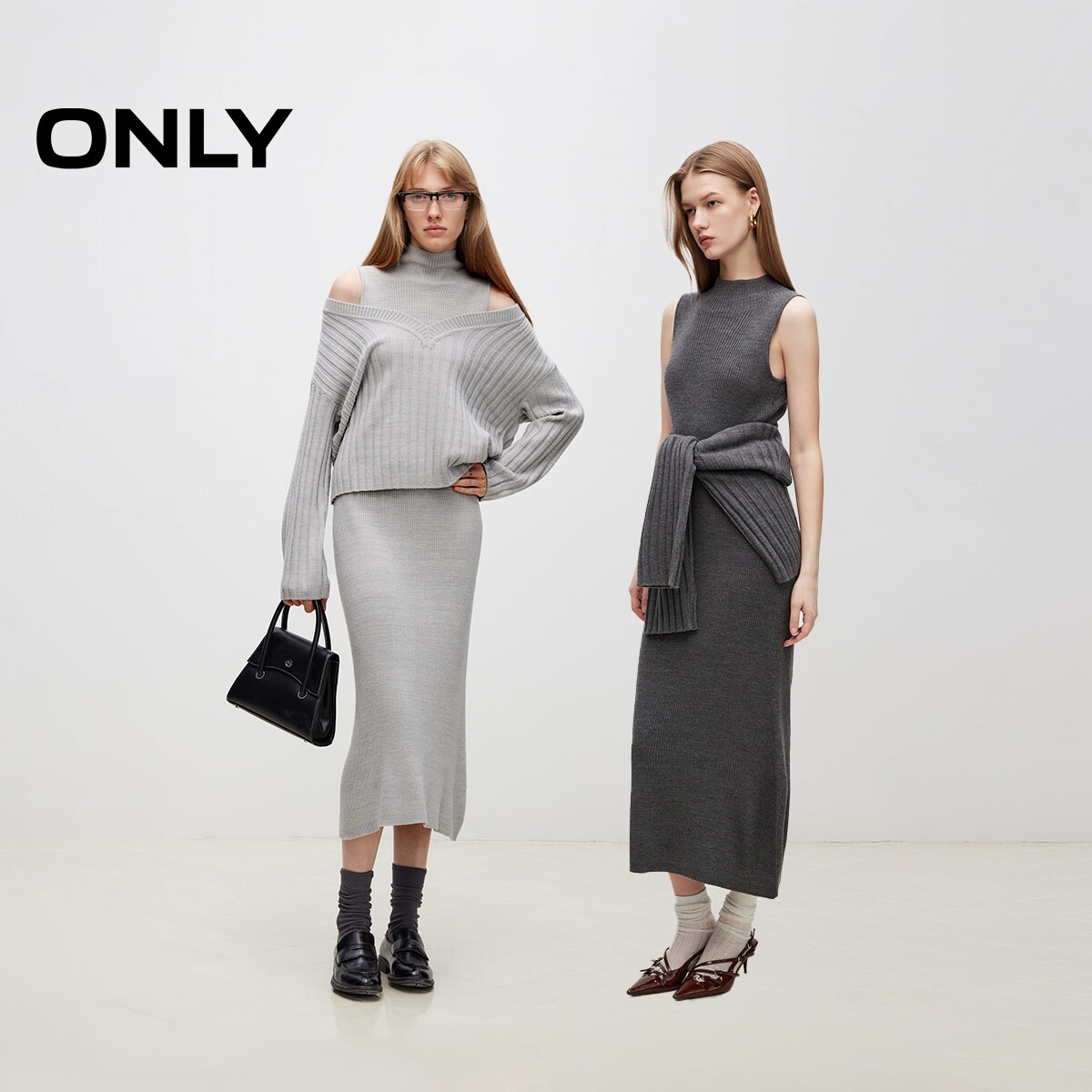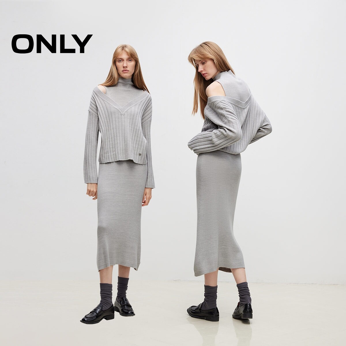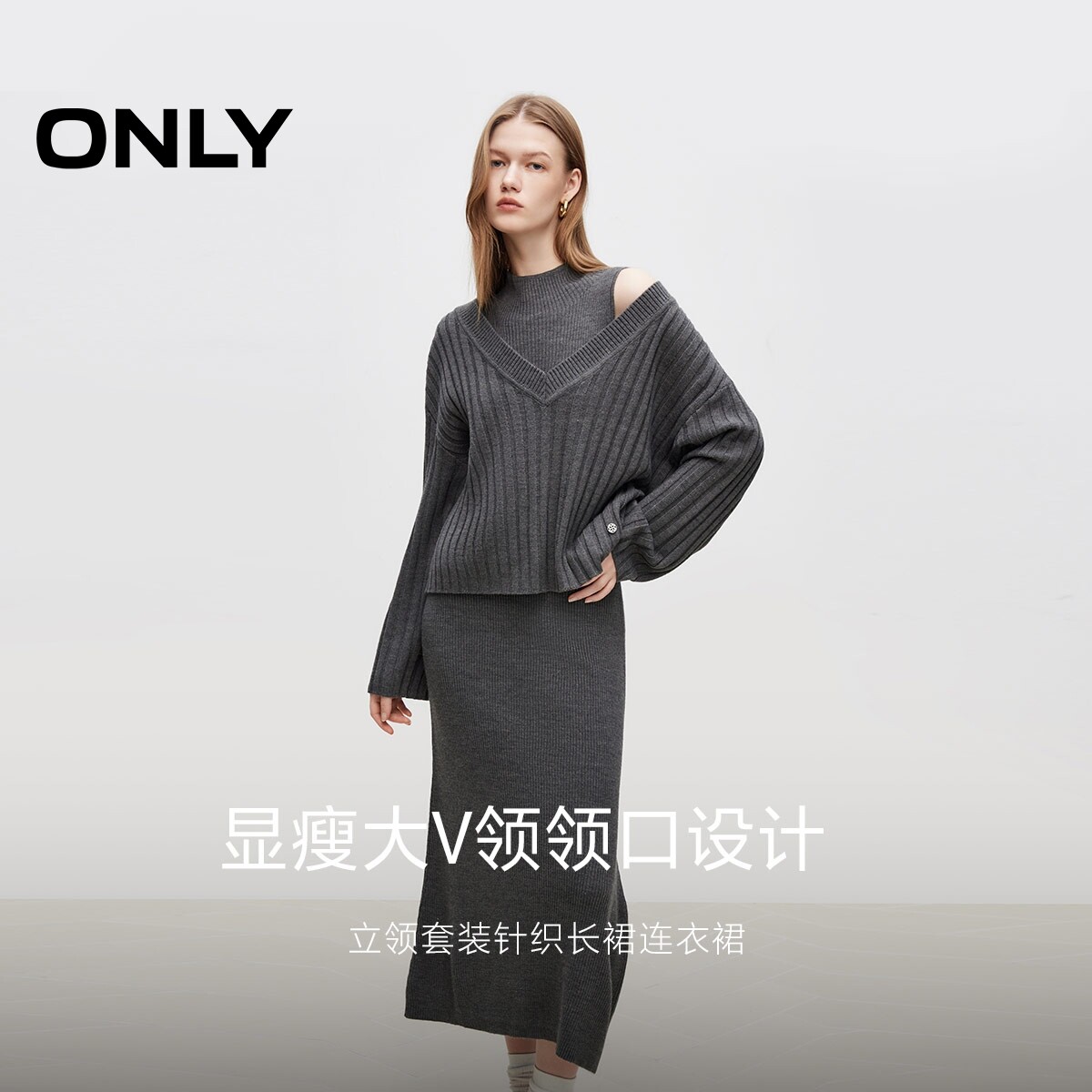 ONLY秋季简约百搭长袖套装针织长裙连衣裙女|124346011