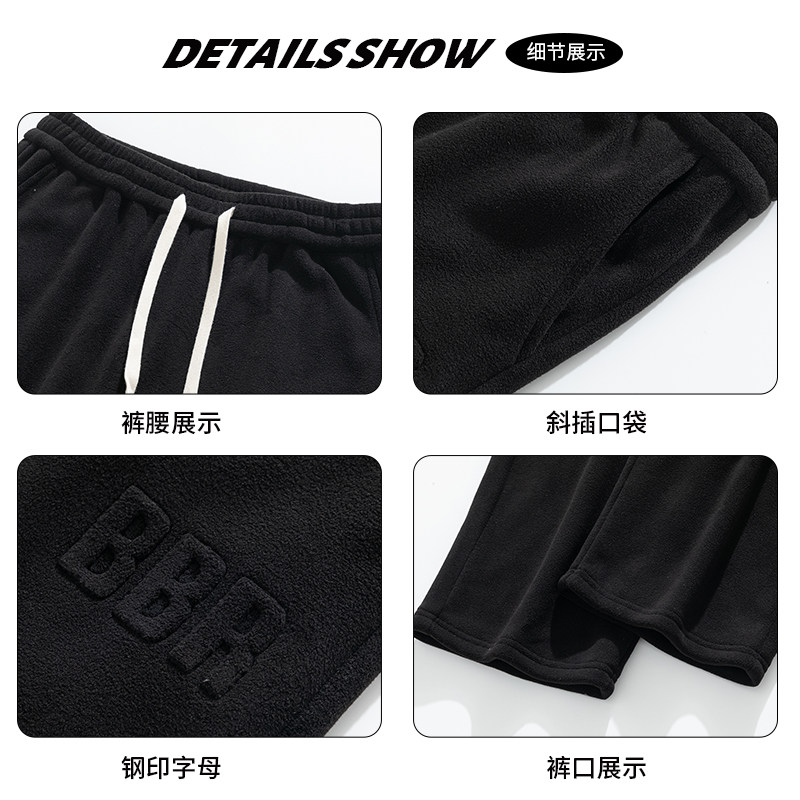 WASSUPJALYN羊羔绒保暖休闲裤子男士冬季加绒加厚直筒棉裤阔腿