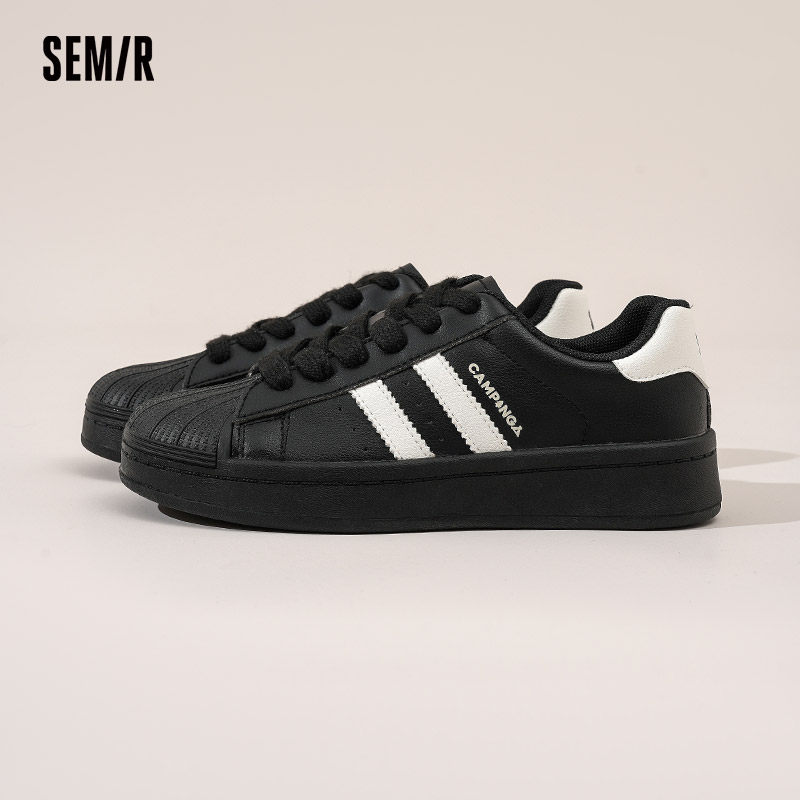 Semir女鞋板鞋2025秋冬新款贝壳头复古百搭厚底运动休闲黑色鞋子