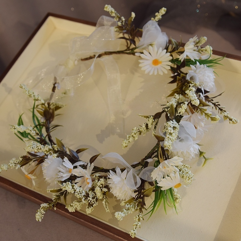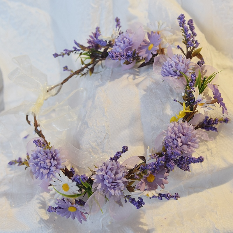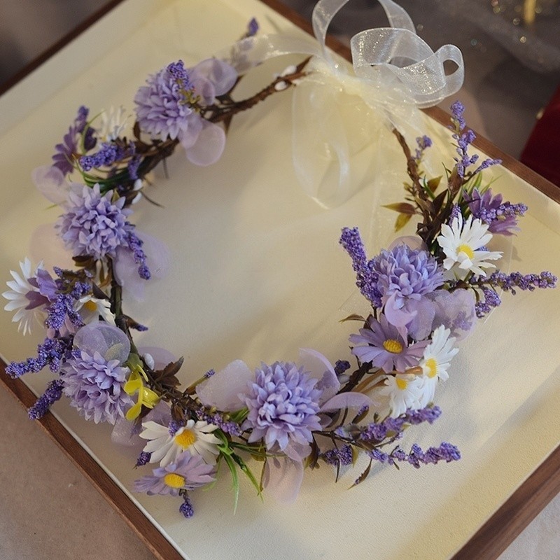 花环头饰紫色仿真花小碎花头饰女孩演出拍摄头环婚纱配饰