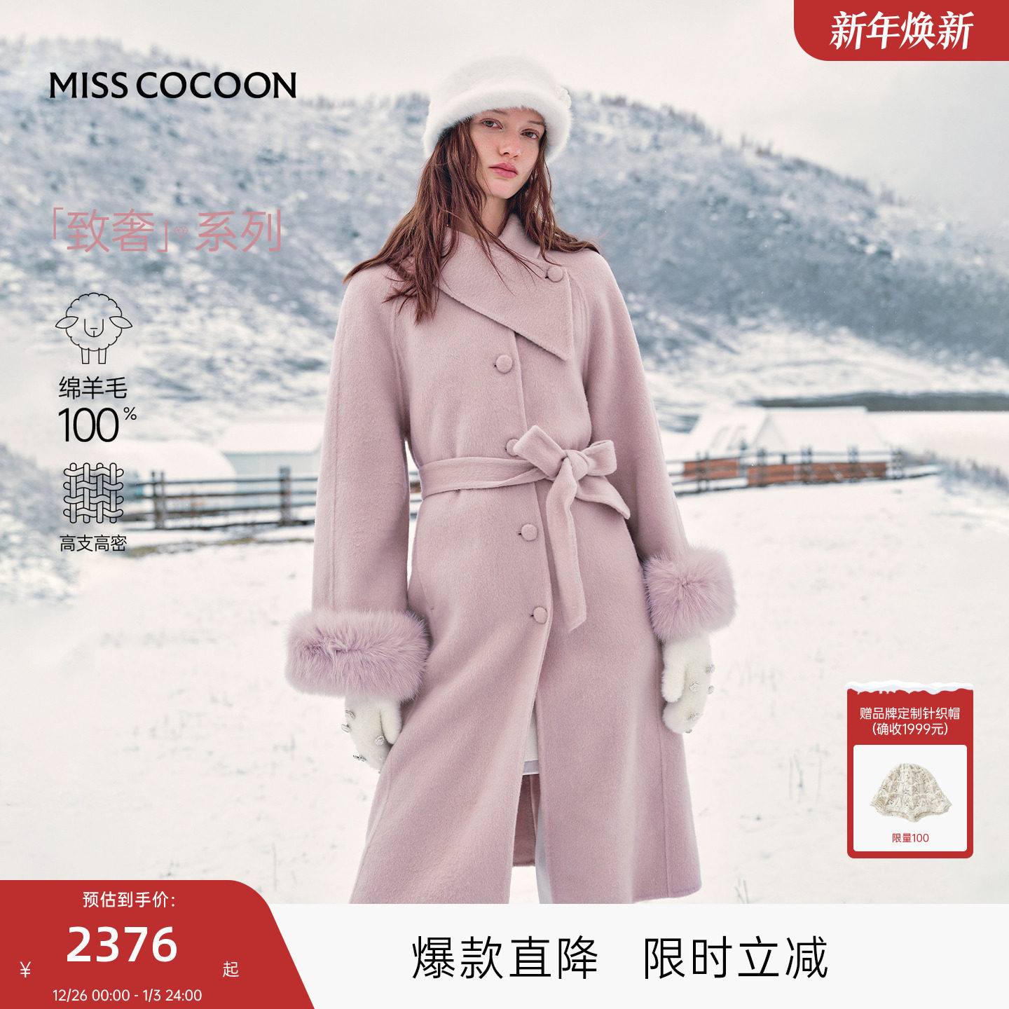 可可尼长款紫色毛呢大衣女2025冬季新款100%绵羊毛外套