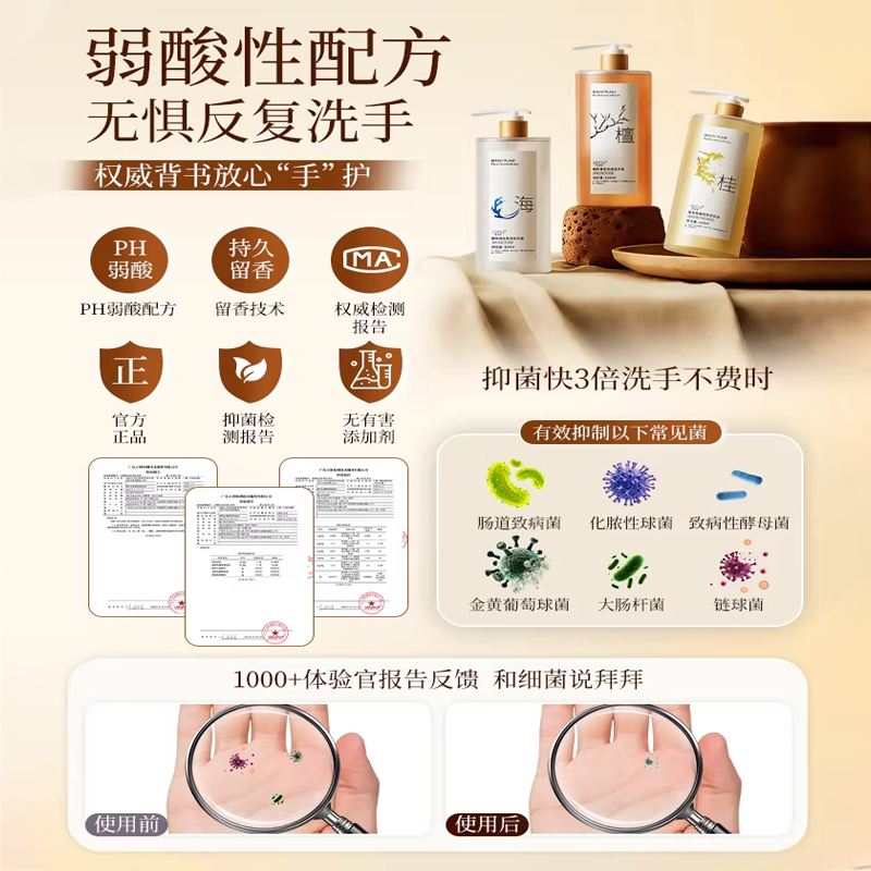香氛洗手液家用按压瓶抑菌持久留香温和清洁儿童母婴家用官方正品