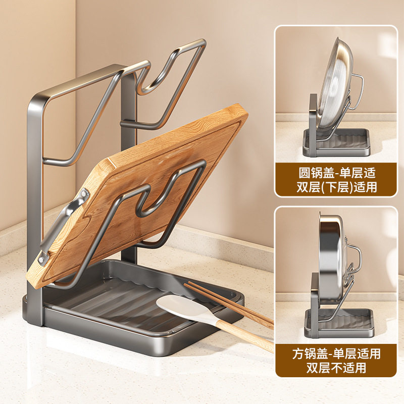 家用放锅盖砧板收纳架锅铲置物架锅盖架坐式厨房台面盘放置切菜