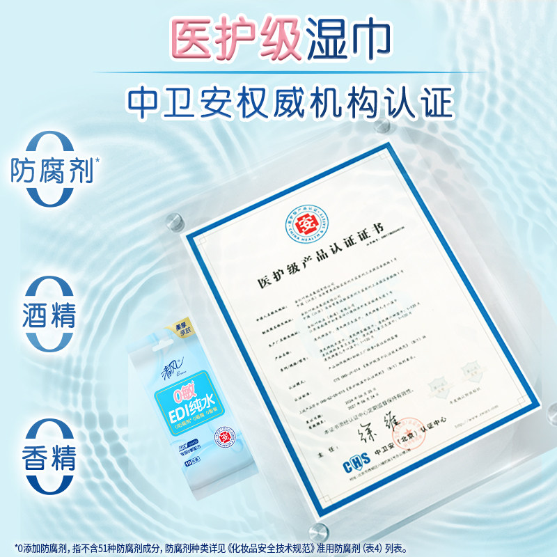 清风EDI手口湿巾100包纯水卫生湿纸巾成人便携式清洁润肤独立包装