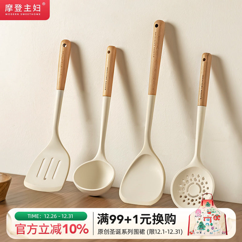 摩登主妇硅胶锅铲不粘锅专用耐高温勺子汤勺漏勺家用炒菜铲子套装