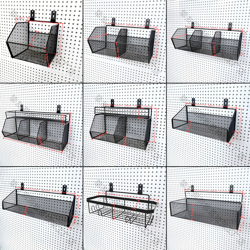 金属洞洞板通用孔距配件收纳盒超市家用置物架方孔圆孔壁挂式网篮