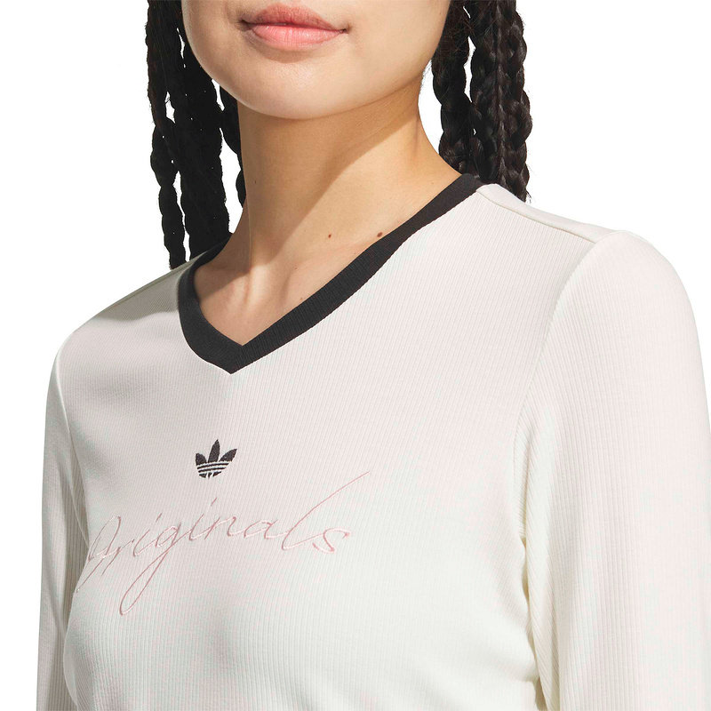 adidas阿迪达斯三叶草休闲针织V领运动上衣26春女长袖T恤 KS2382