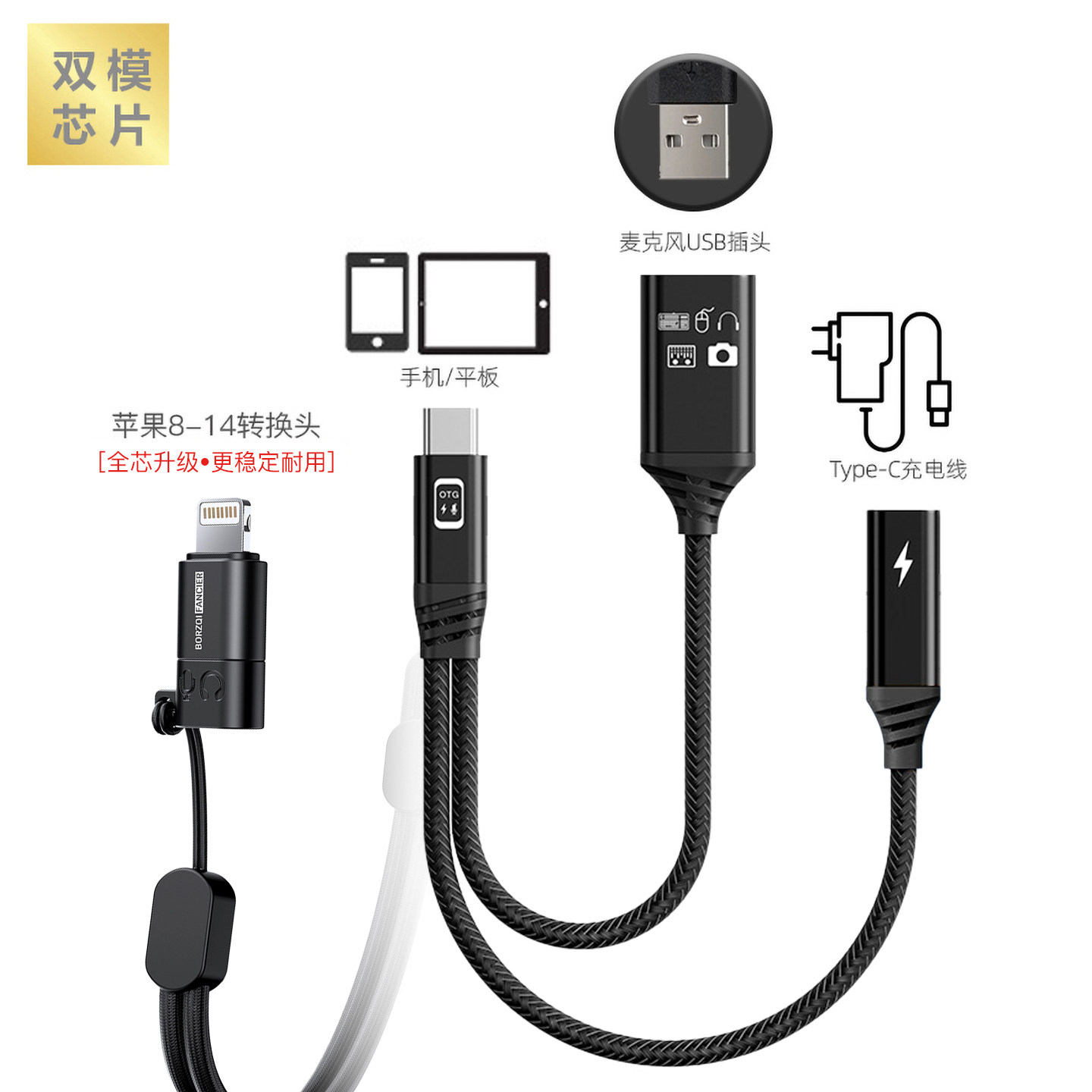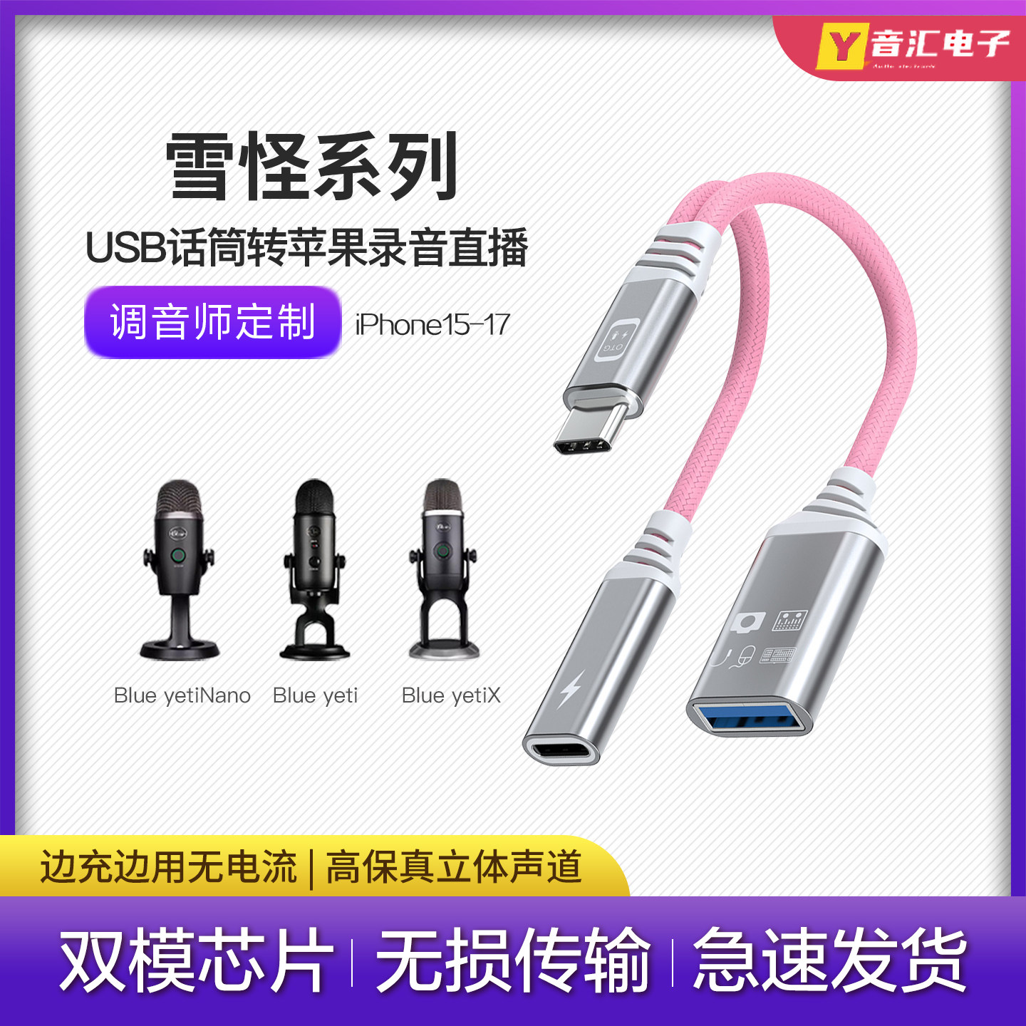 Blue yeti 雪怪USB录音话筒麦克风转换器接头苹果手机专用otg线材
