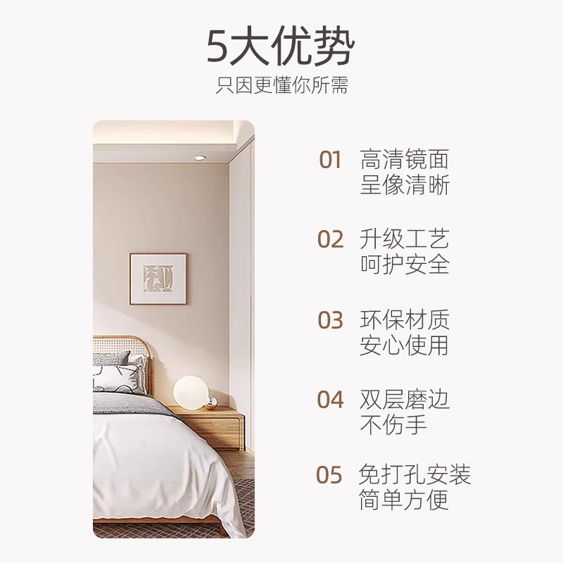 亚克力软镜子贴墙自粘家用高清全身穿衣镜墙面粘墙贴柜门的软玻璃