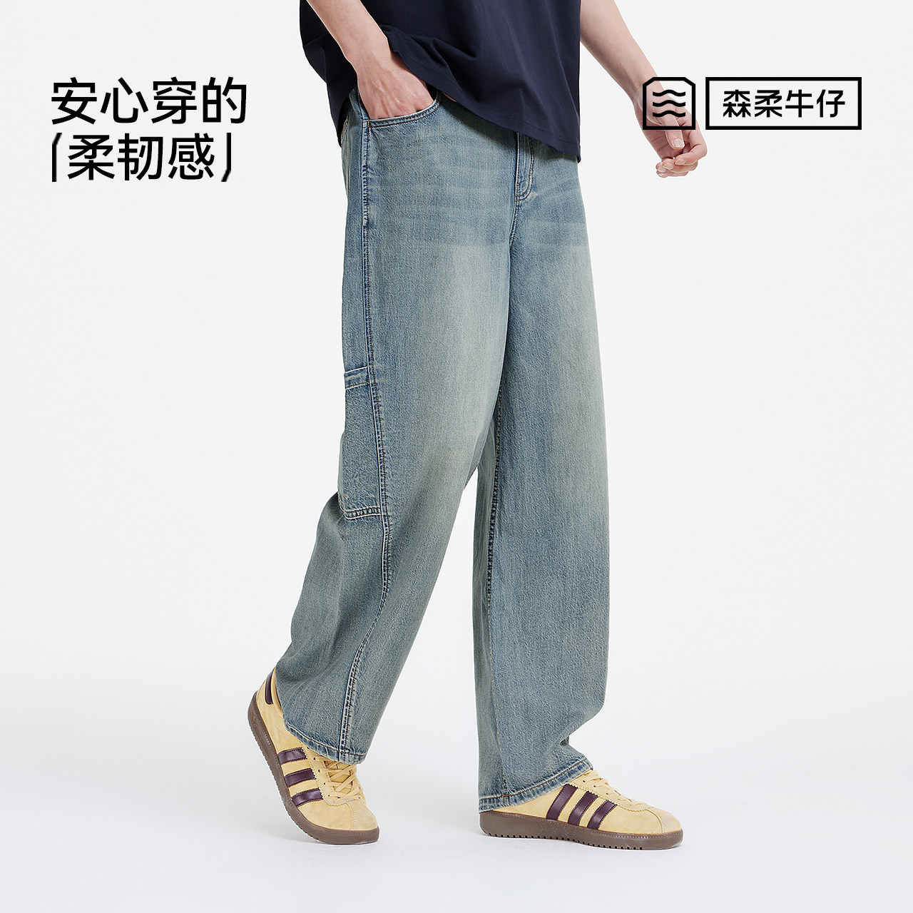 森柔牛仔森马牛仔裤男款2025新直筒裤长裤原色复古美式水洗宽松潮